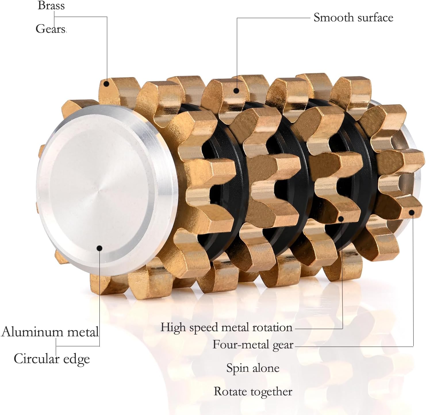 - 【Creative Toy】4-in-1 gear toy is a metal brass gear structure, which is reliable and firm, and is not easy to break, fall off and wear, giving you a good use experience. The four gearsmetal fidget spinner can rotate at the same time, can rotate independently, and can be disassembled and assembled by themselves to meet your various gameplay. The 4-tooth gyro can be placed on the palm of your hand for mini massage to relieve finger numbness and relax your body and mind.