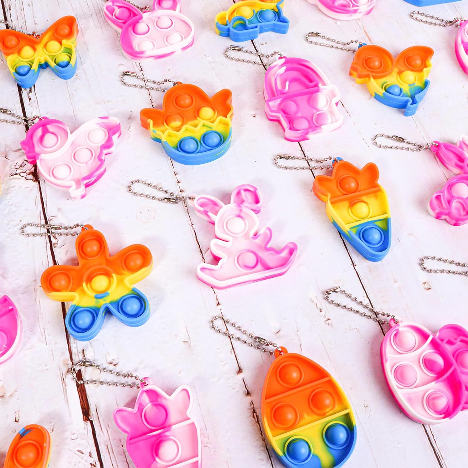 - 【Easter Gifts】The 24 Pack Colorful Mini Easter Pop Fidget Toys are perfect for kids, boys, girls, toddlers easter basket stuffers, easter basket fillers, easter gifts, easter toys, easter hunt, party favors, birthday gifts, school classroom rewards, carnival prizes, pinata, goodie bags.