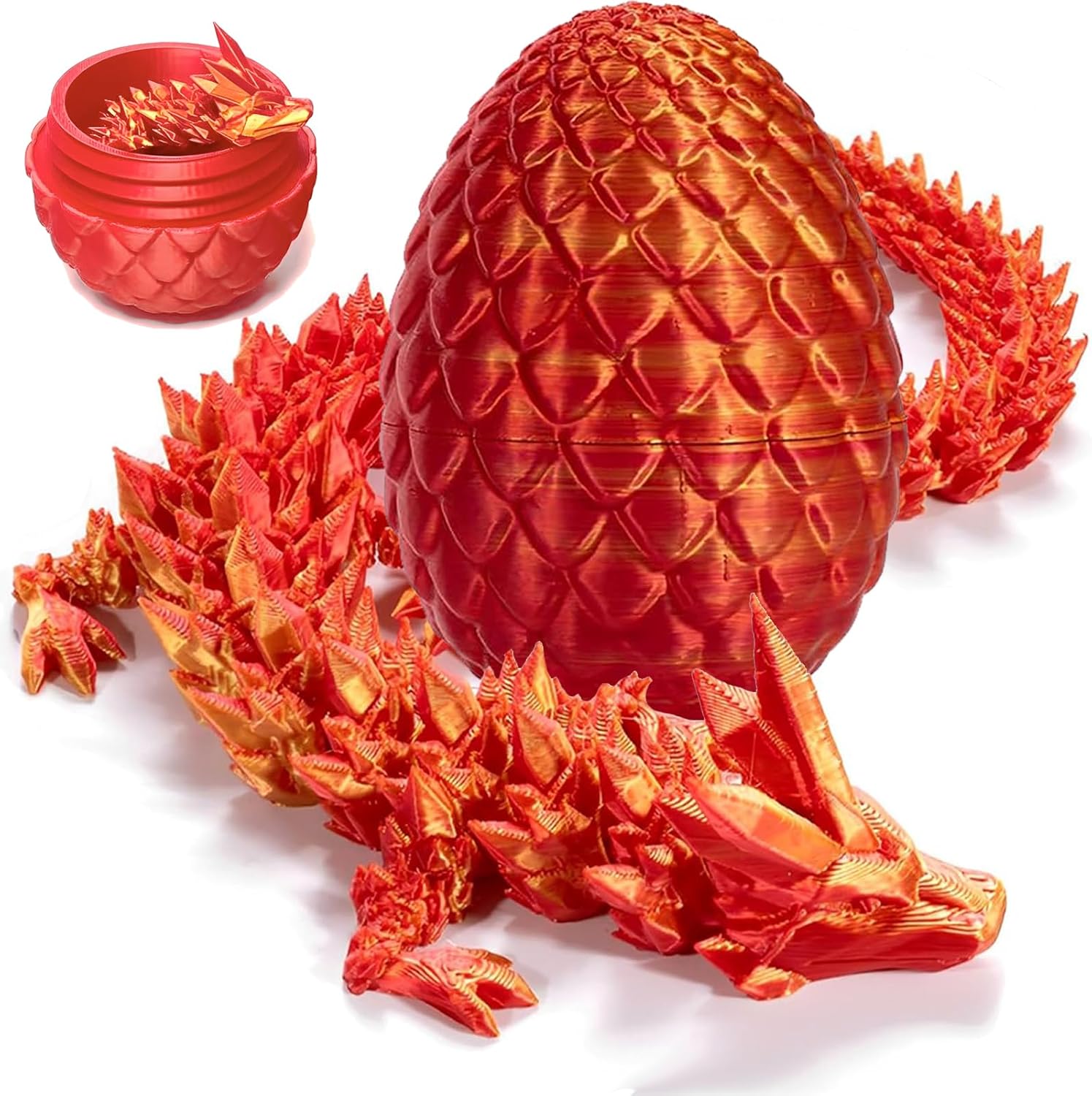 3D Printed Dragon Egg Crystal Dragon Fidget Toy Full Articulated Dragon Mystery Dragon Eggs with Dragon Inside Home Office Desk Decor Gifts Toys (Red)