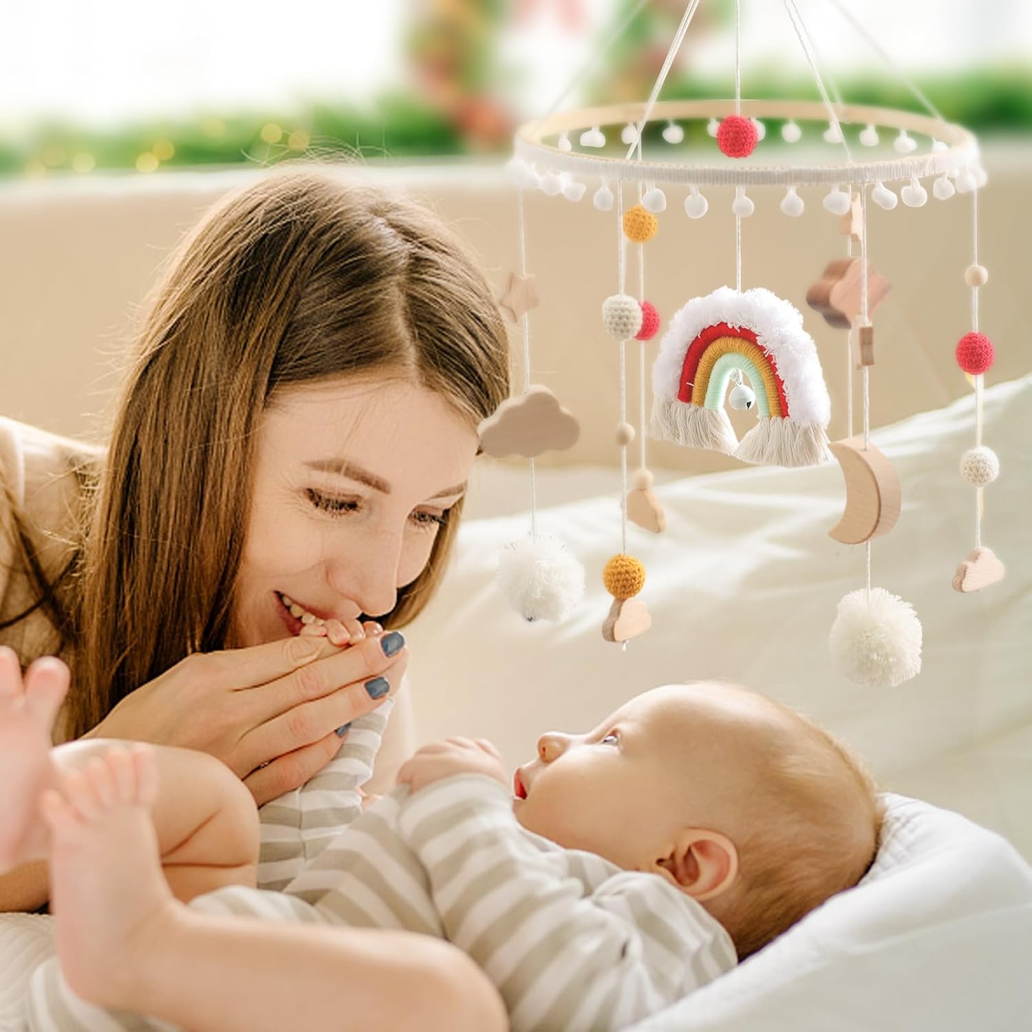 - ๐RAINBOW BABY MOBILE - Rainbow baby mobile is in colorful and natural colors . Rainbow crib mobile, the novel design is more popular with babies. Perfectly match any nursery decor or boho decor for any room of the house.