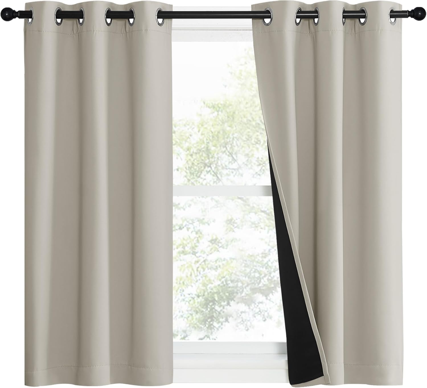 NICETOWN Natural 100% Blackout Lined Curtains, 1 Pair, 37" Width x 50" Length Each Panel, 2 Thick Layers Narrow Wide Window Treatment Panels Thermal Insulated Drapes for Kitchen Small Window