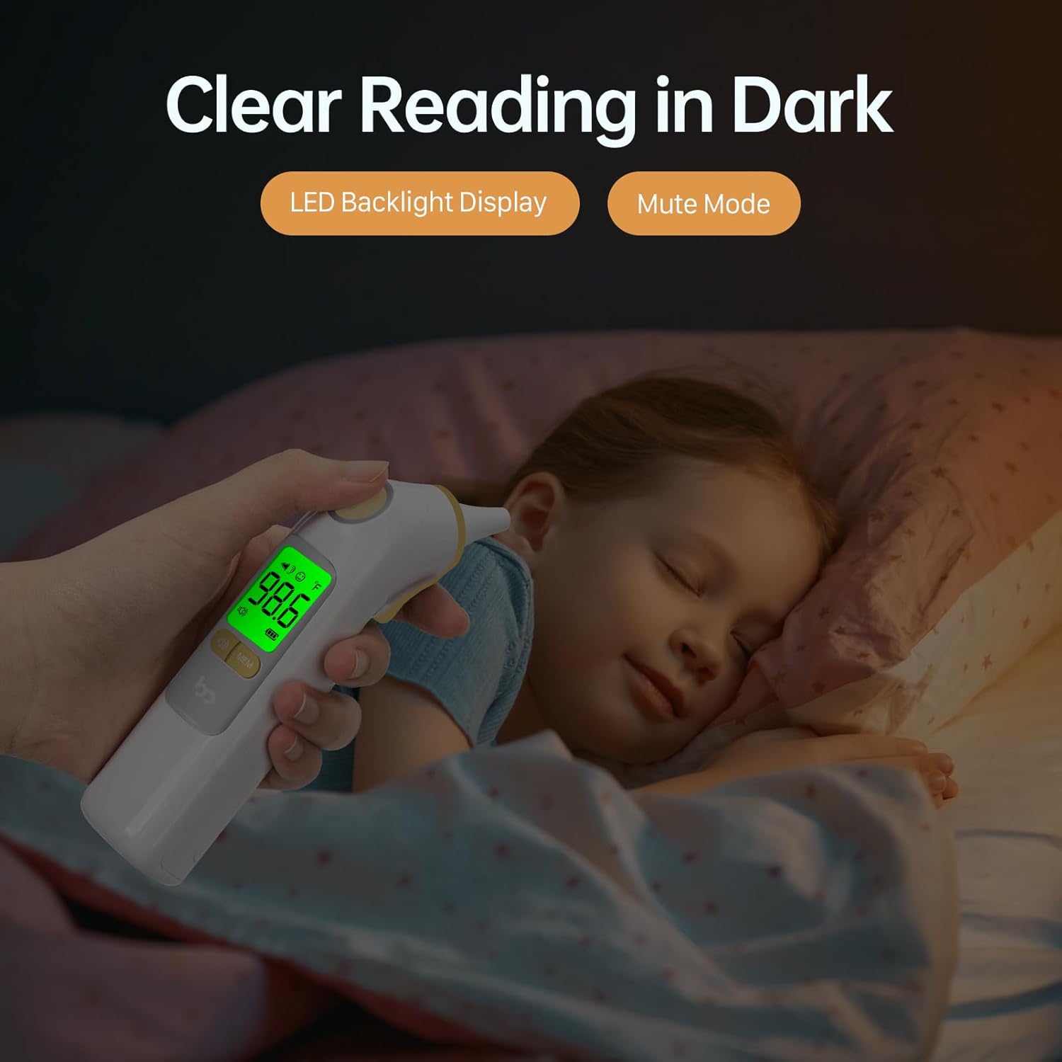 - SILENT MODE & FEVER ALERT: When you have a fever, the machine will emit a short beep sound to alert you of abnormal temperature, if your baby is asleep at night (silent mode), you can use the three colors of light on the screen (green/orange/red) to know the degree of your fever, so that you can seek medical attention in time