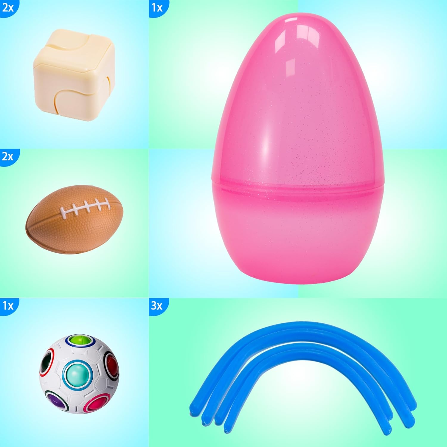 Ganowo Jumbo Easter Eggs Prefilled with 30pcs Fidget Toys,Easter egg Fillers,Basket Stuffers,Classroom Gifts, Egg Hunt Kids Toddler Boys Gifts Party Favors