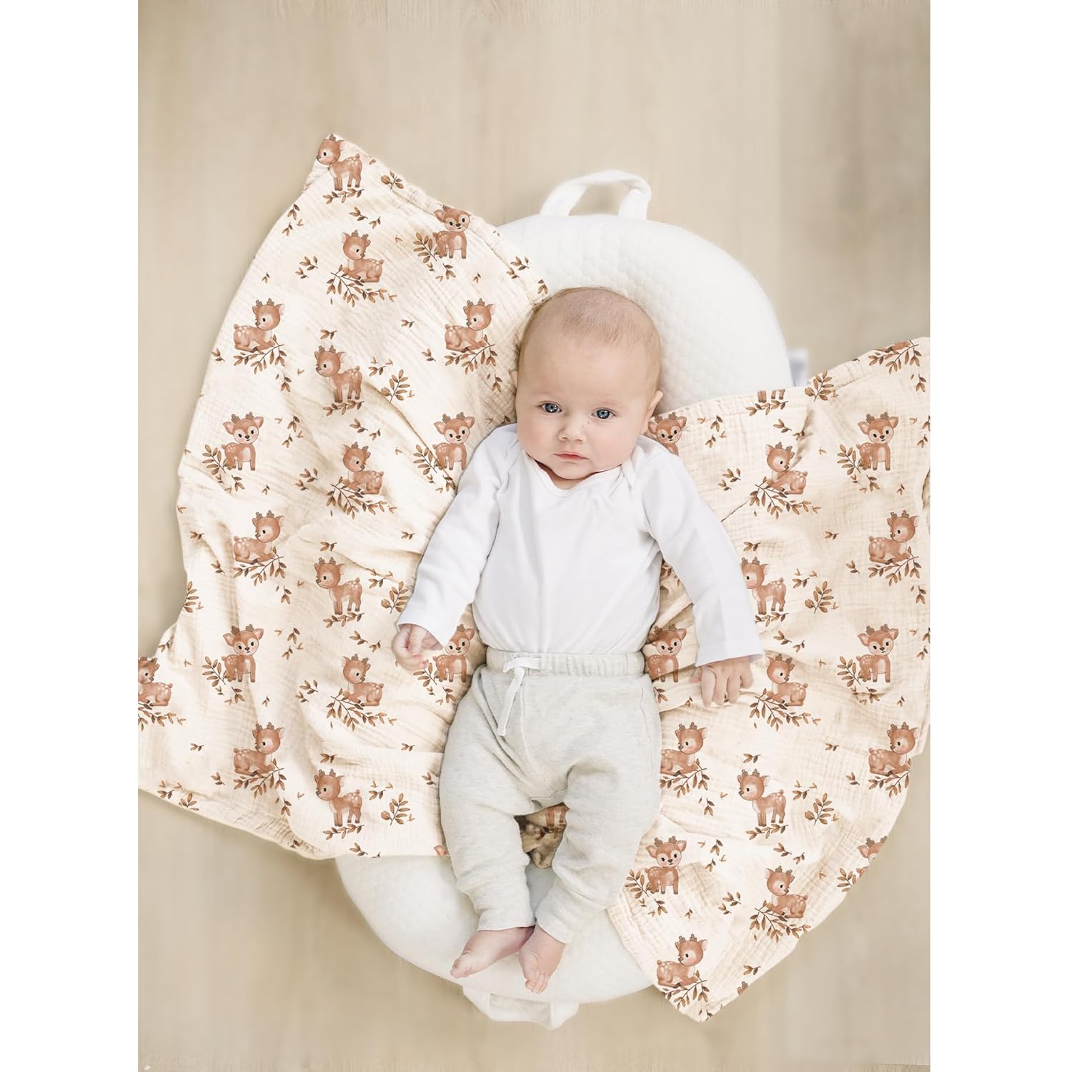 - Snug & Cozy Size: Our muslin baby blanket is way large enough to easily wrap or swaddle your babies. The back is soft plush fabric, which makes your baby feel secured and warm like mother's arms. Your little ones will sleep peacefully all night