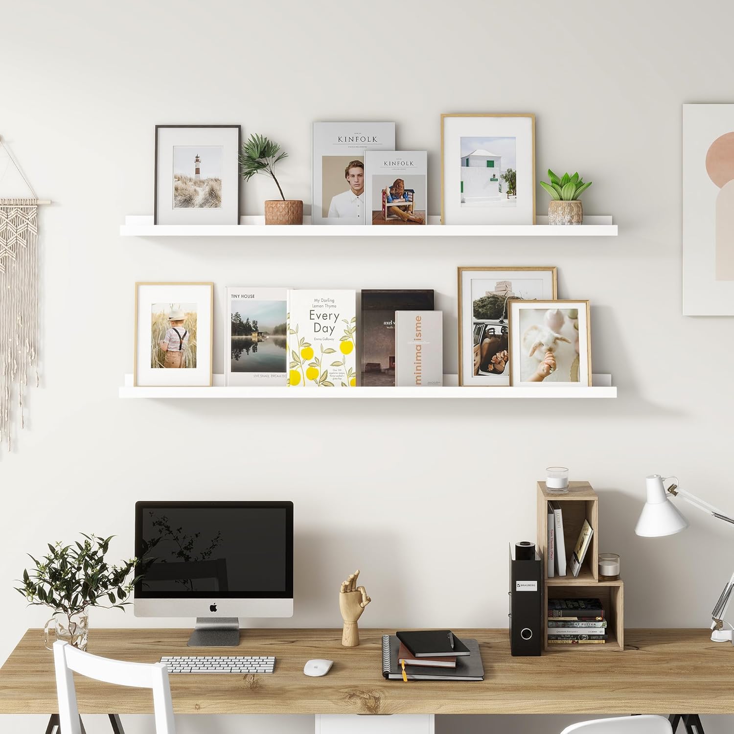 Picture Ledge Shelf, Floating Shelves Set of 2, Solid Pine Wood 55'' Long Large Nursery Book Shelves for Toys Storage, Kids Bookshelf for Living Room Bedroom Decor Books Photo Frames, White