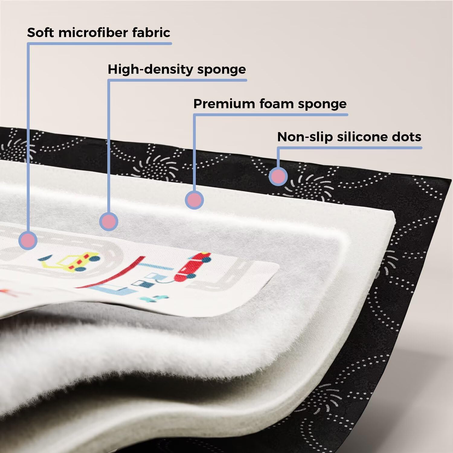 - 【Easy to Clean】Without worries stains and spills! the surface of baby playmat is wateproof and the liquid will not soak the mat, easy to clean with tissue or wet towel. Design with special quilting process that support washed in a washing machine without deformation.