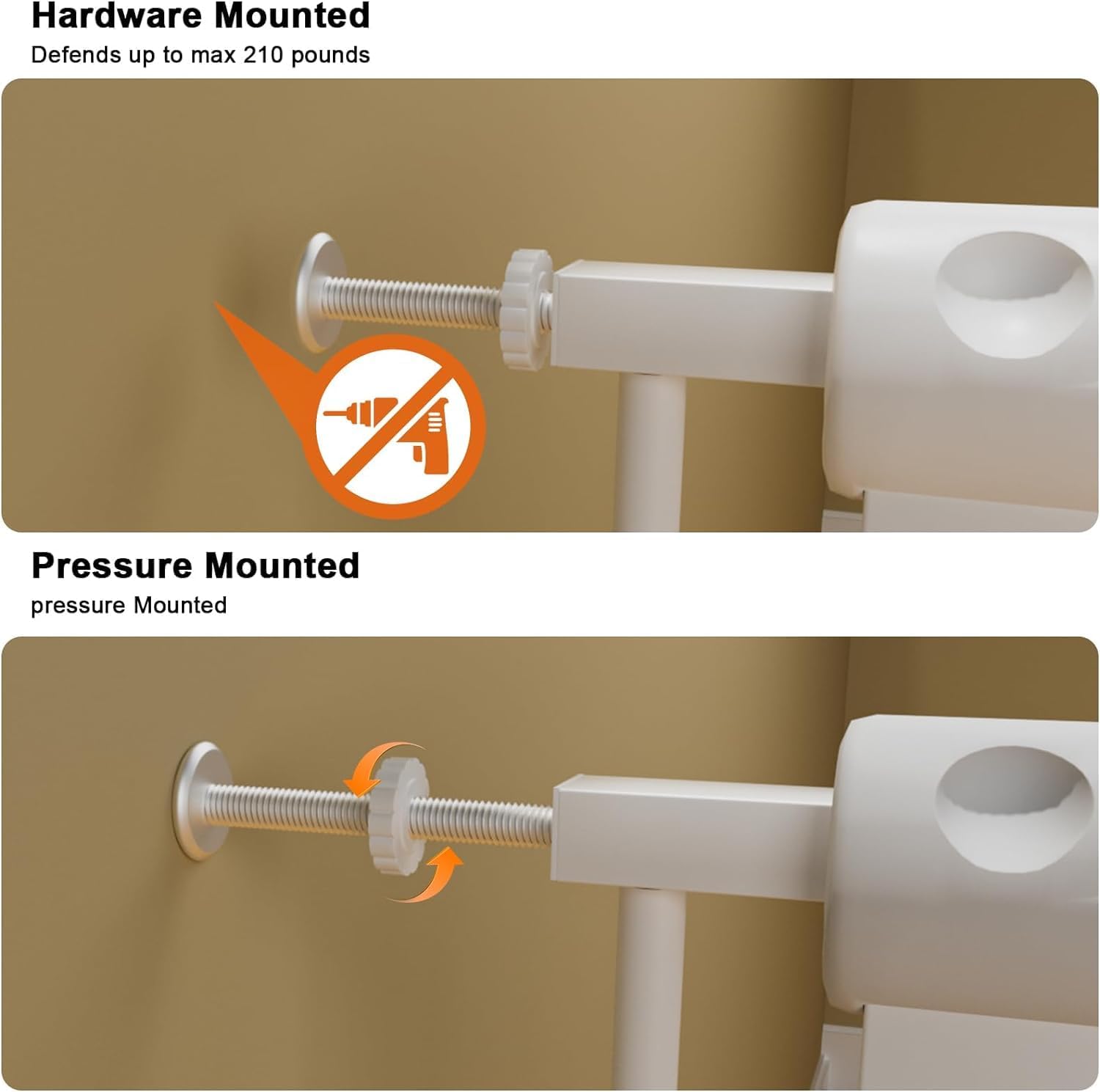 - 【Auto Close & MULTI-FUNCTIONAL】The extra wide baby gate pressure mounted will auto close when handle released,Double sided design allows you open it from both directions,this chid safety gate for kids or pets dogs suit for stairs, hallway, doorways, kitchen, living room and any indoor or outdoor spaces.