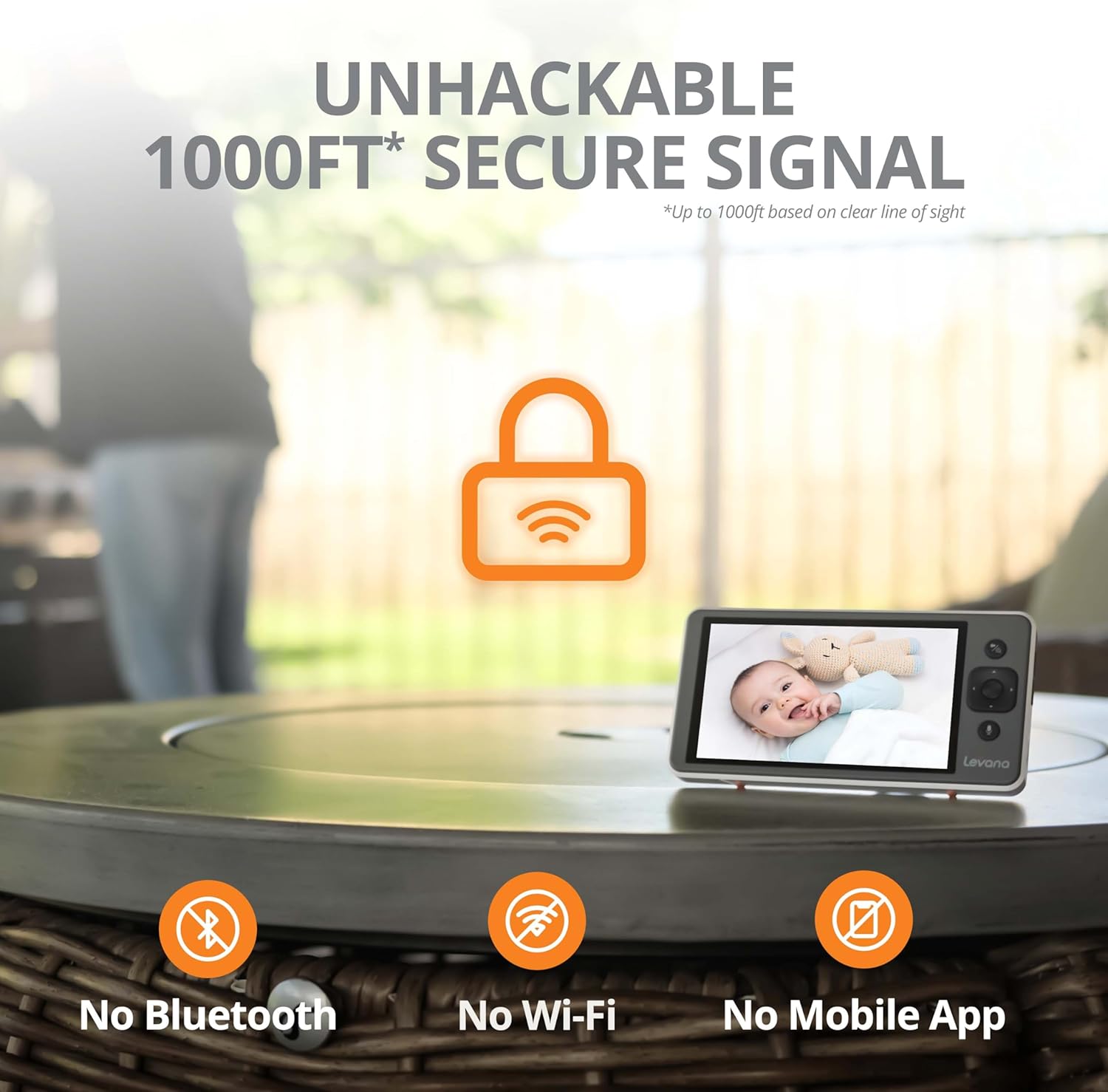 - UNHACKABLE & SECURE: This no WIFI baby camera monitor comes with an impressive 1000ft GigaXtreme wireless range, this baby monitor non wifi uses secure, safe technology to ensure your privacy. No Wi-Fi, no Bluetooth, and no risk of hacking, giving you complete peace of mind.