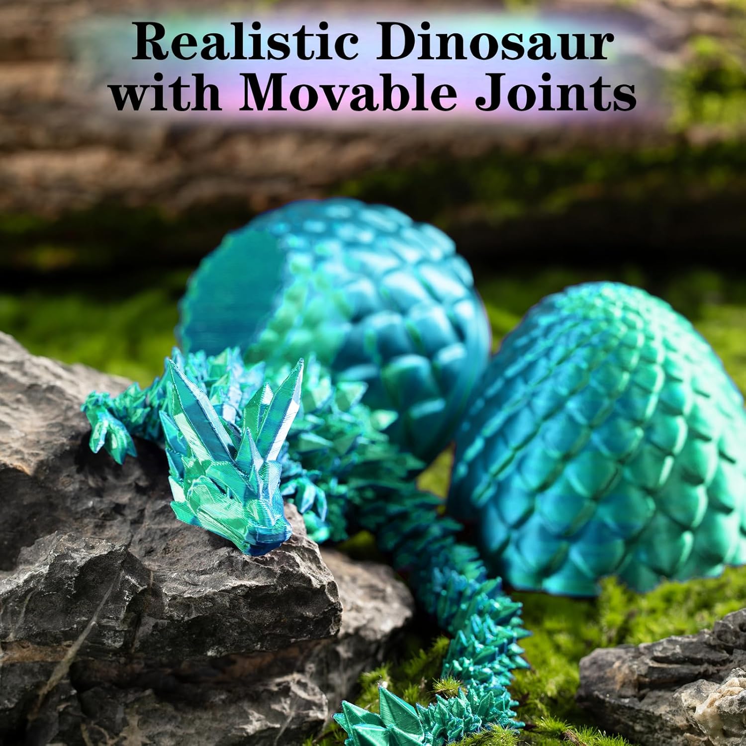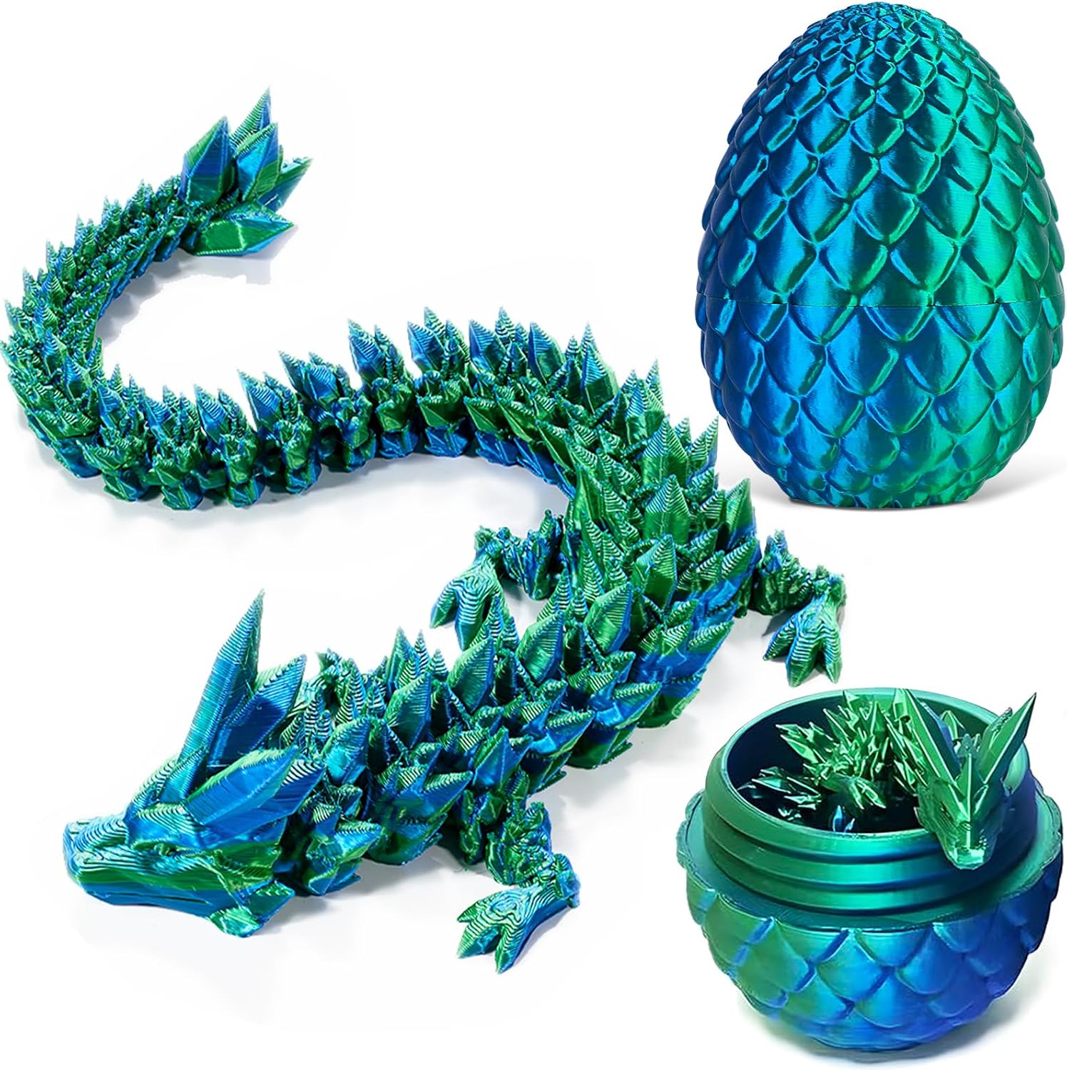 3D Printed Dragon Egg Toys, Easter Egg Crystal Dinosaur Eggs Fidget Toys with Movable Joints for Kids Adults Gifts (Green)
