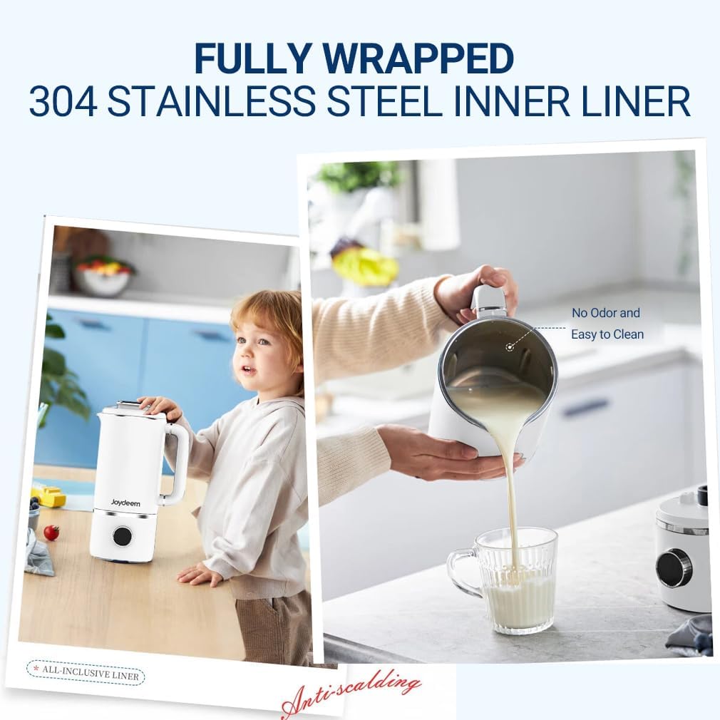 - SHARP BLADE & POWERFUL MOTOR - Soymilk Maker's 4-leaf steel blade with 10000r/min high speed and large torque motor, realizing dry beans straight to beat, the finished soymilk taste smooth, no need to filter. Comes with a cleaning brush for easy cleaning to protect your hands from injury.