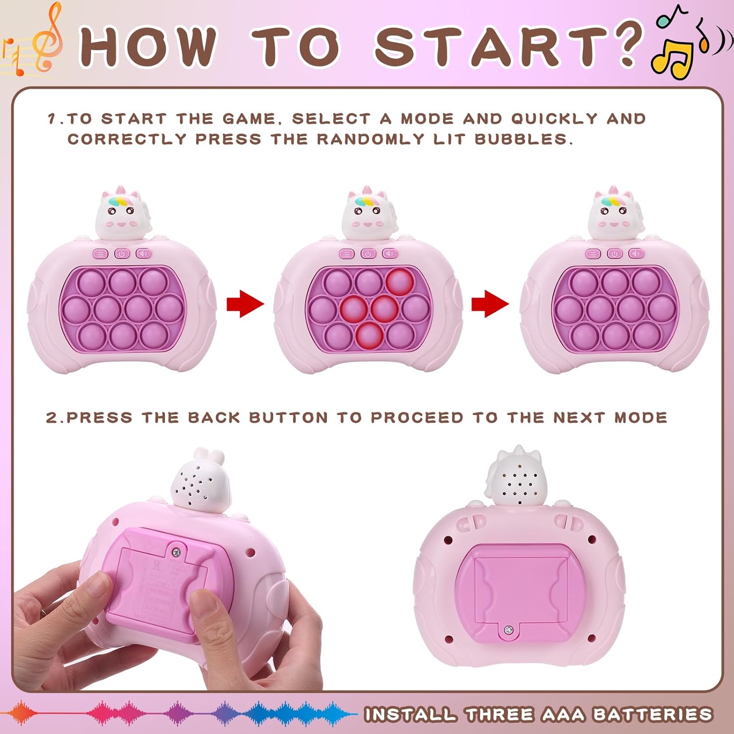 Fast Push Game Pop Fidget Toys for Kids, Fast Push Bubble Game, Quick Push Pop Game for Boys & Girls Age 3-12, Handheld Puzzle Game Sensory Toys Relaxation and Decompression (Pink Unicorn)