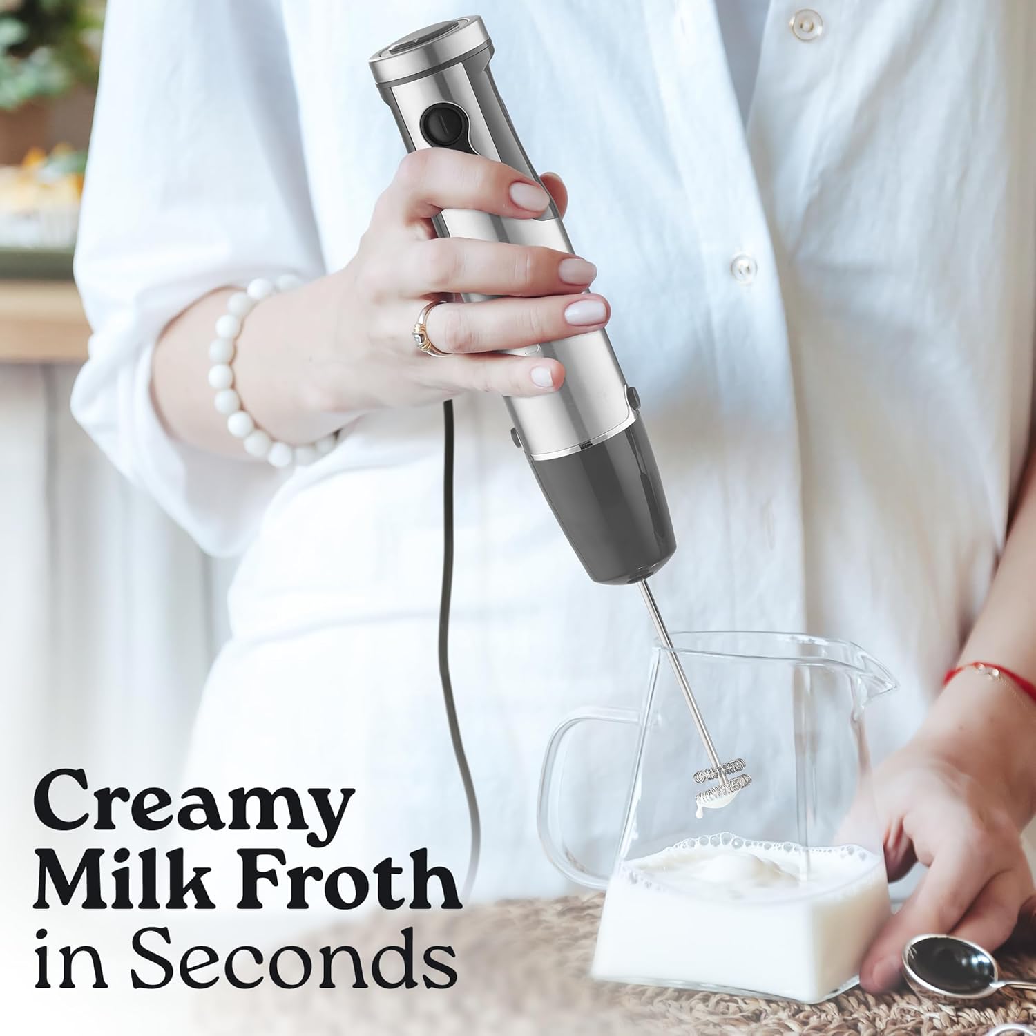Zulay 4-in-1 Immersion Stick Mixer Hand Blender - 800 Watts, 12 Speeds, 5-ft Power Electric Cord, Handheld Portable, Stainless Steel Blades - With Whisk, Frother & Stick Blender Attachments - Gray