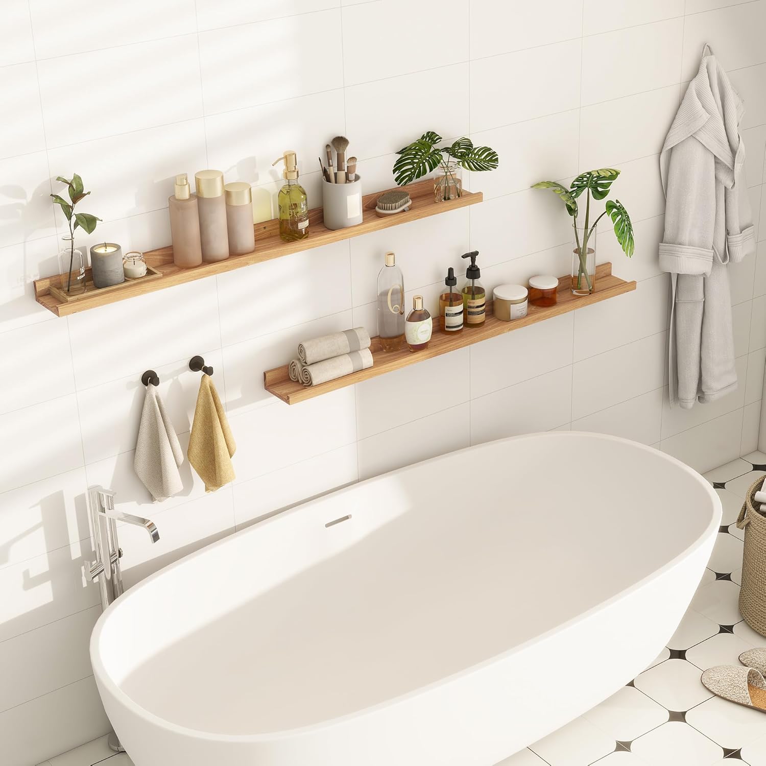 - 【Wall-Mounted Floating Shelves】Add style and storage to any room with these floating shelves. Perfect for showing off home decor, photos, plants, and more. Place them above the fireplace, entryway, desk, or in other unused wall spaces to instantly enhance your space.