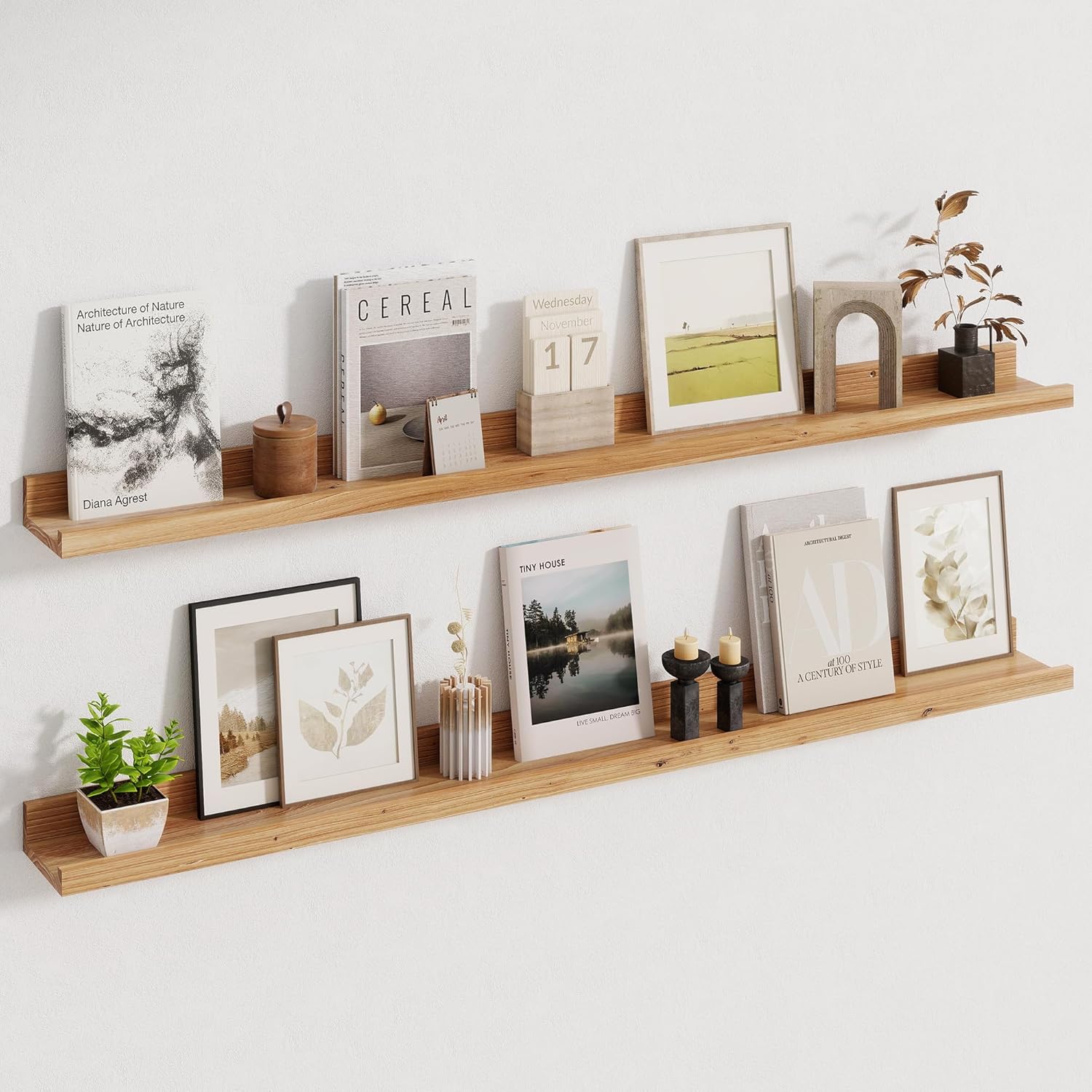 - 【Versatile Shelf Sets】If you have lots of pictures and need a way to display them, our picture ledge shelves are perfect. These shelves keep your photo frames in place, whether large or small, offering a safe and stylish display solution without worrying about them falling.