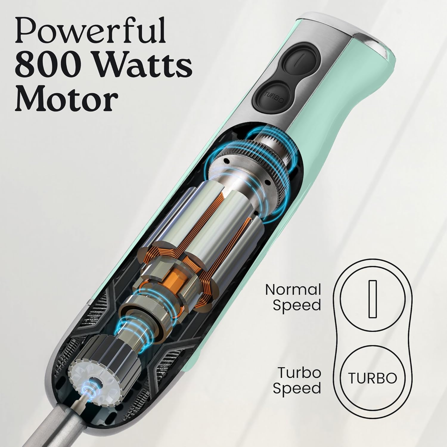 Zulay Immersion Stick Mixer Hand Blender - 800 Watts, Turbo Mode, 5-ft Power Electric Cord, Handheld Portable, Stainless Steel Blades - For Effortless Blending Smoothie, Soup, Baby Food, Puree - Aqua