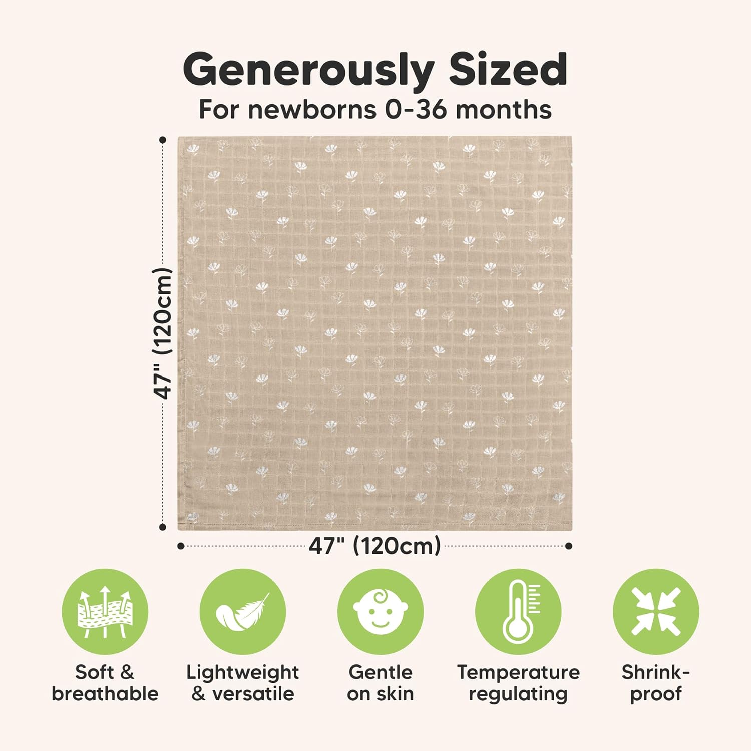 4-Pack Muslin Swaddle Blankets for Boys, Girls - Organic Baby Swaddles for Newborns, Soft & Breathable Receiving Baby Blankets for Girl, Boy, Neutral, Newborn Essentials Gift (Wild Bloom)