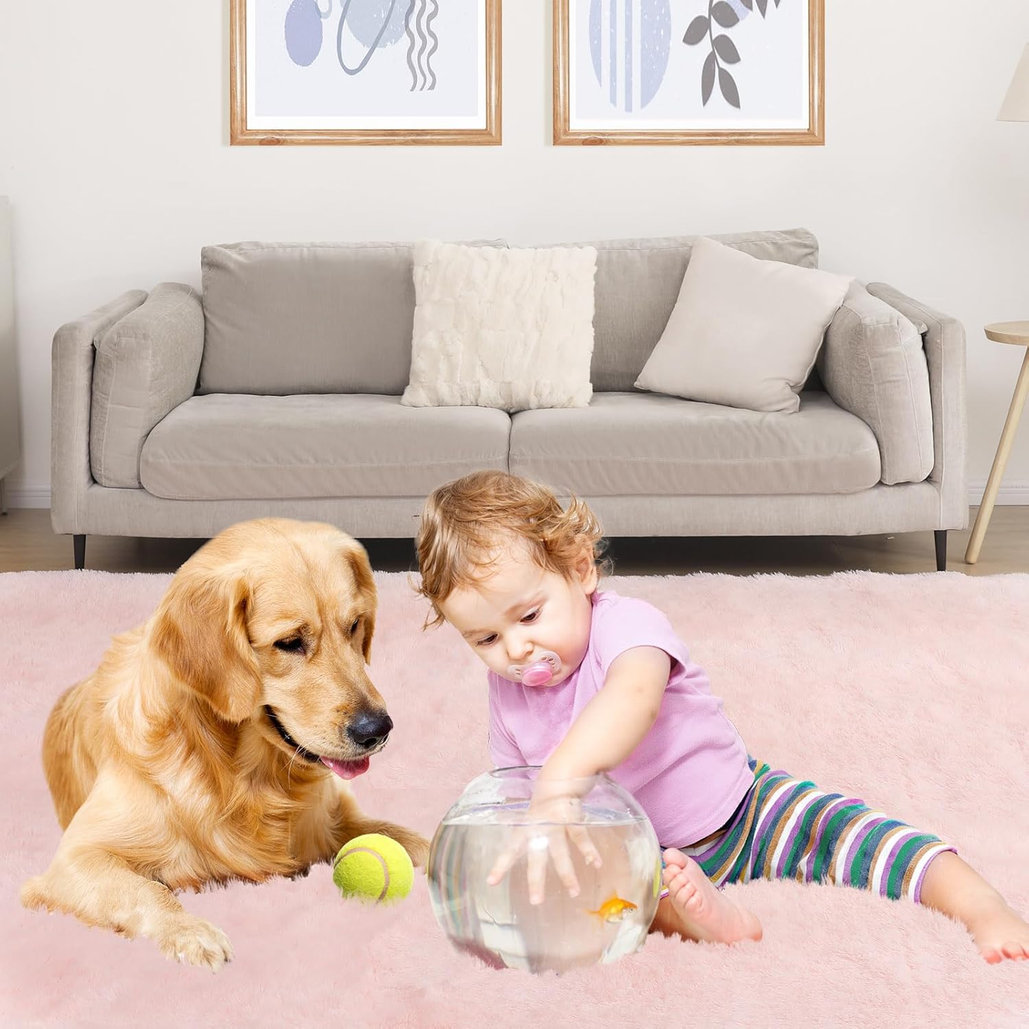 - Kid and Pet Friendly: This soft, long-pile area rug is made from safe and skin-friendly polyester materials. Even Babies or individuals with sensitive skin can enjoy its comfort without worrying about allergies. It brings comfort to every member of the family, including small dogs, without any harm or concern about the carpet causing any harm to them