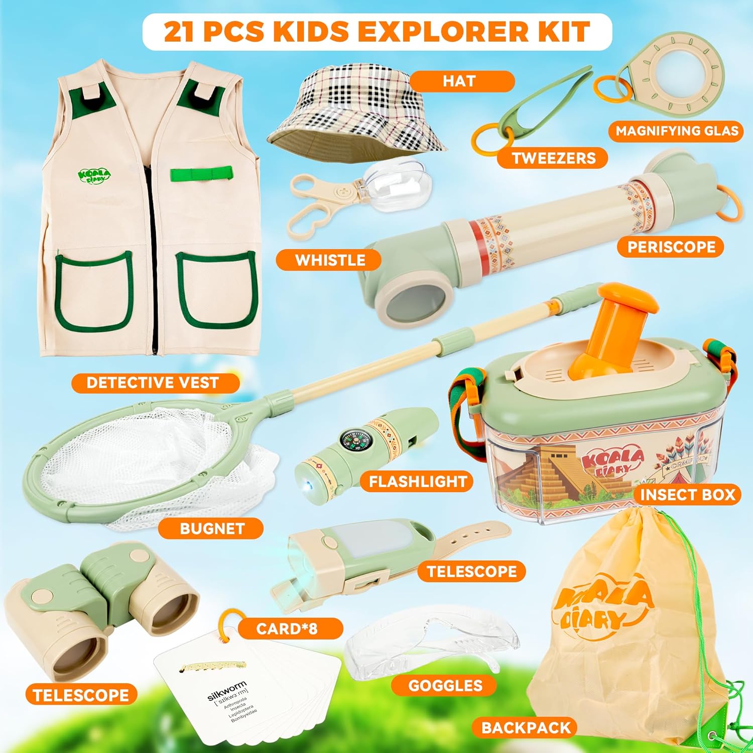SMILESSKIDDO Kids Explorer Kit, 27 Pcs Outdoor Explorer Kit & Bug Catching Kits - Kid Nature Kits Outdoor Camping Adventure Toys for Kids 3+ Years Old