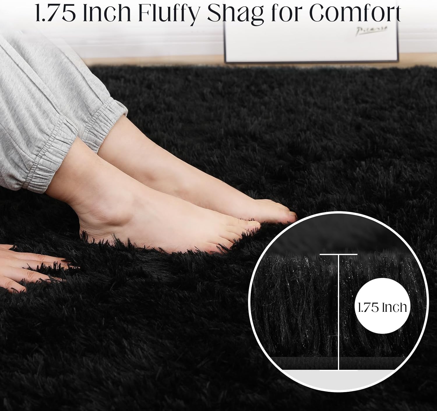 Black Rug, 8x10 Area Rugs for Living Room, Soft Plush Area Rugs for Bedroom, Non-Slip Indoor Carpet for Nursery, Study Room, Kids Room, Room Decor