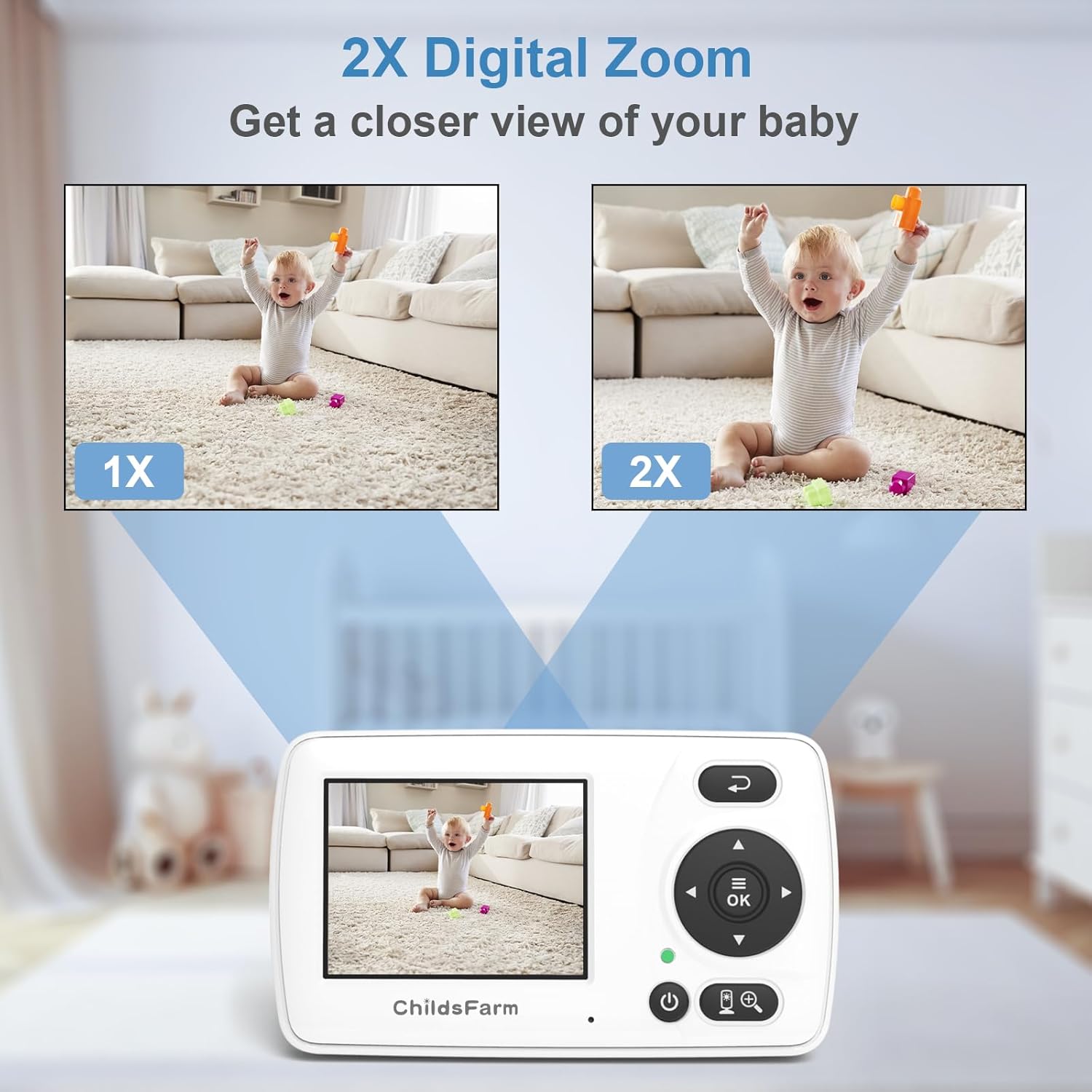 - 【Infrared Night Vision & All Day Caring】ChildsFarm baby monitor offers infrared night vision, allowing you to see your baby clearly in complete darkness. It automatically switches to night vision mode, ensuring uninterrupted monitoring of your baby's sleep. Whether it's day or night, Childs Farm provides continuous monitoring for your peace of mind and all-day care.