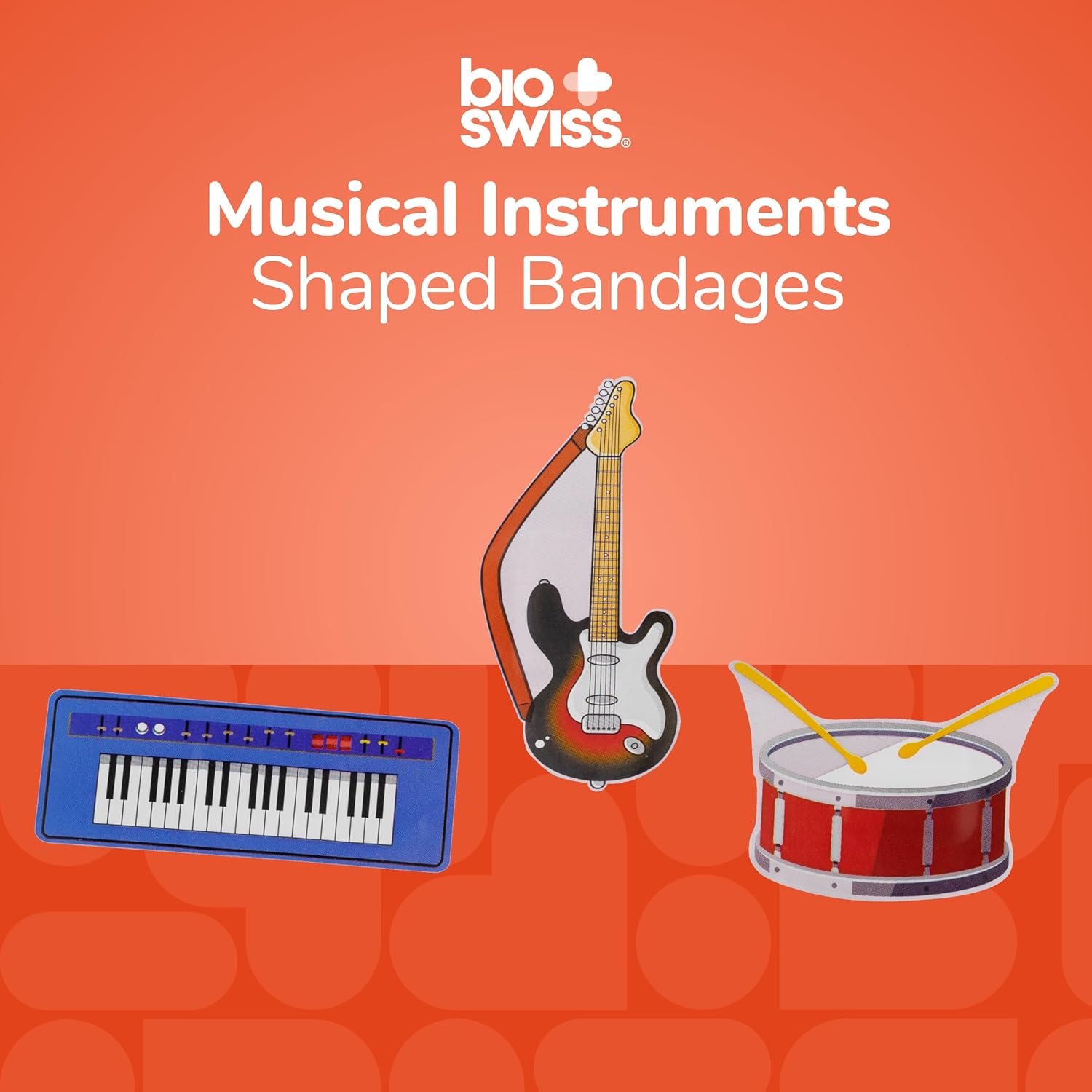 - MUSICAL INSTRUMENT BANDAGES: This 24 piece pack of Music Instrument bandages feature fun electric guitar, keyboard, and drums shapes, and is great for putting a smile on kids' faces while protecting wounds such as cuts, scrapes, and burns; sticky bandages come in a cute cardboard box and are perfect for kids and adults alike, and also for school nurses and pediatric doctors