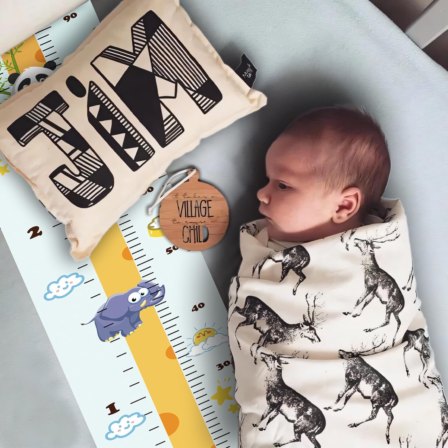 Kids Growth Chart, Wood Frame Fabric Canvas Height Measurement Ruler from Baby to Adult for Child's Room Decoration 7.9 x 79in (7.9 x 79in, Giraffe)