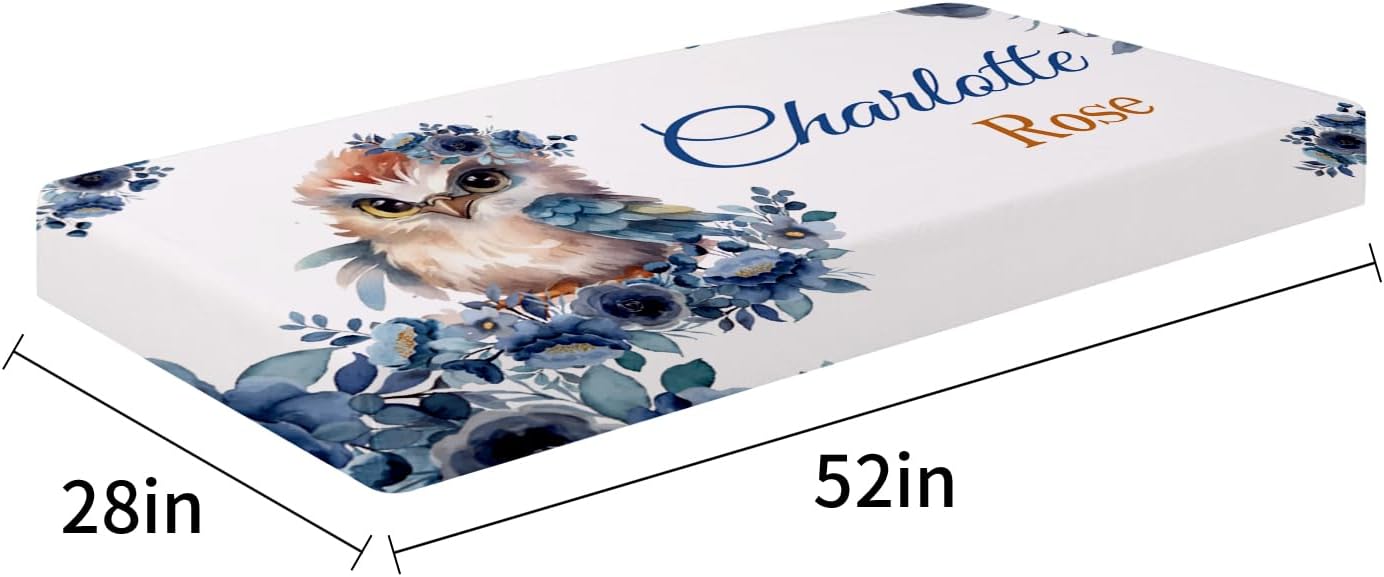 Personalized Baby Crib Bedding Set - Custom Name Owl Pattern 3 Pcs Set - Soft Blanket with Double Layer Dotted Backing, Fitted Sheet, Room Rug for Newborns Boys Girls Shower Gift