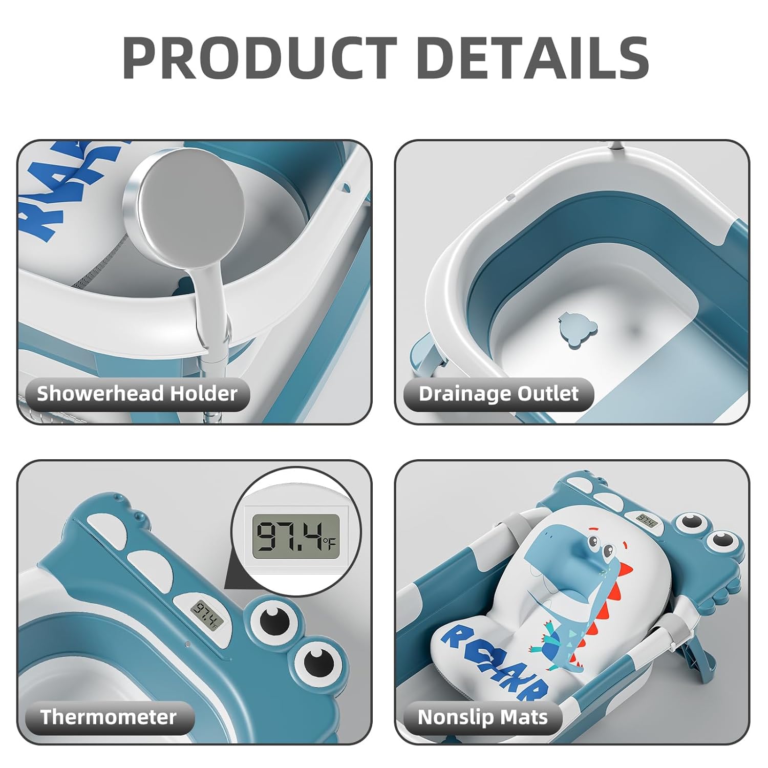 - Visible Real-time Temperature Monitoring: The travel-friendly baby bathtub is equipped with a real-time temperature sensor, offering instant reminders to prevent scalding or exposure to cold water. The wrap-around temperature lock system ensures accurate monitoring, making it a versatile choice for use in bathrooms, homes, during travel, or camping.