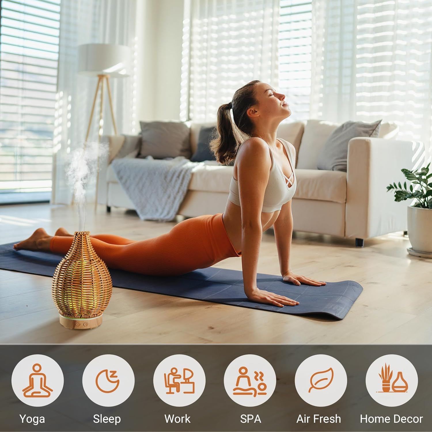 - Rattan Weaving Craft: Hand-crafted with care, our aromatherapy diffuser imitates beautifully woven rattan for a rustic yet elegant touch to your home or office décor.