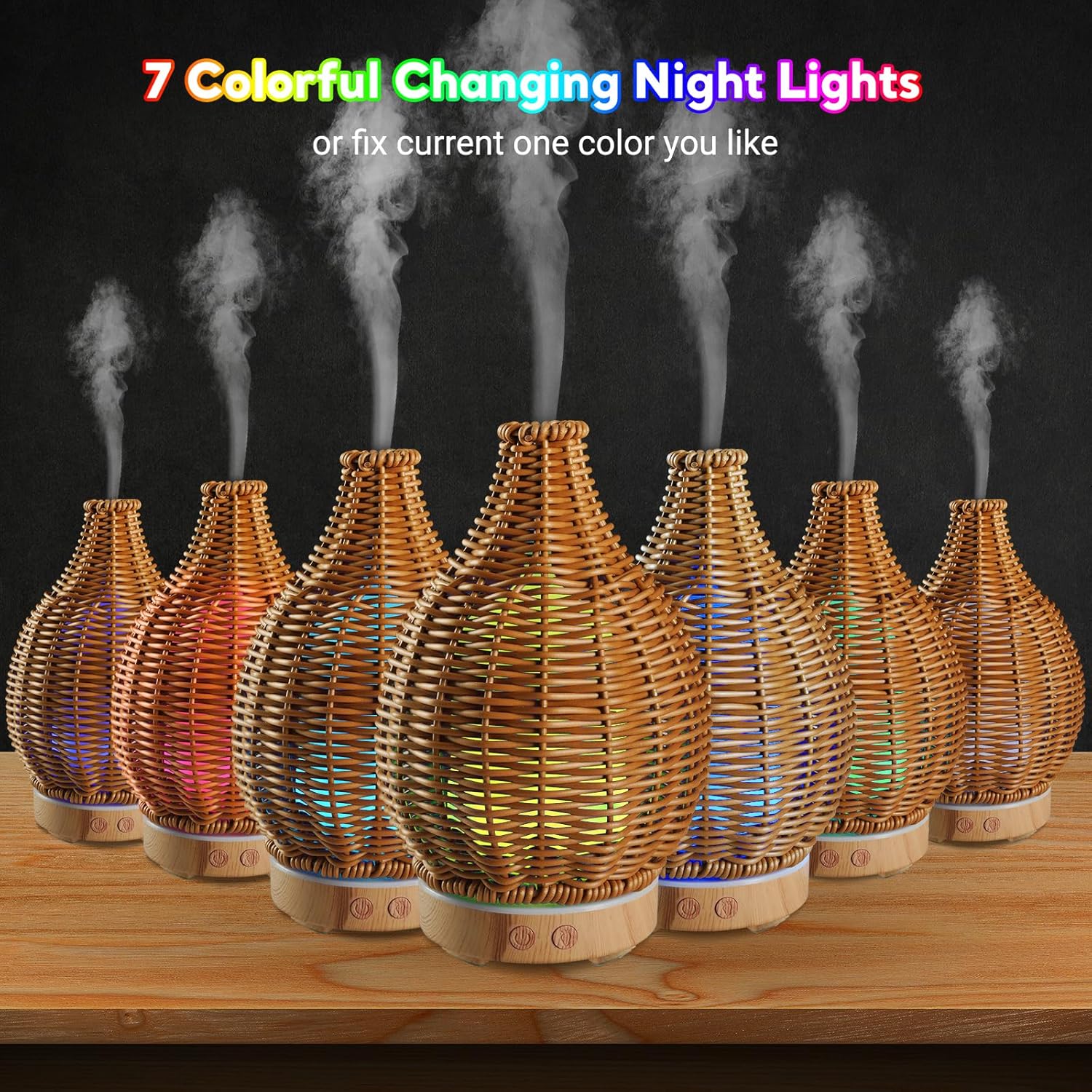 Boho Essential Oil Diffuser for Home Rattan Weaving with Remote Control, 100mL 7 Changing Color Lights Ultrasonic Aroma Humidifier, Noiseless Auto-Off Sleep Mode for Bedroom Office Workout