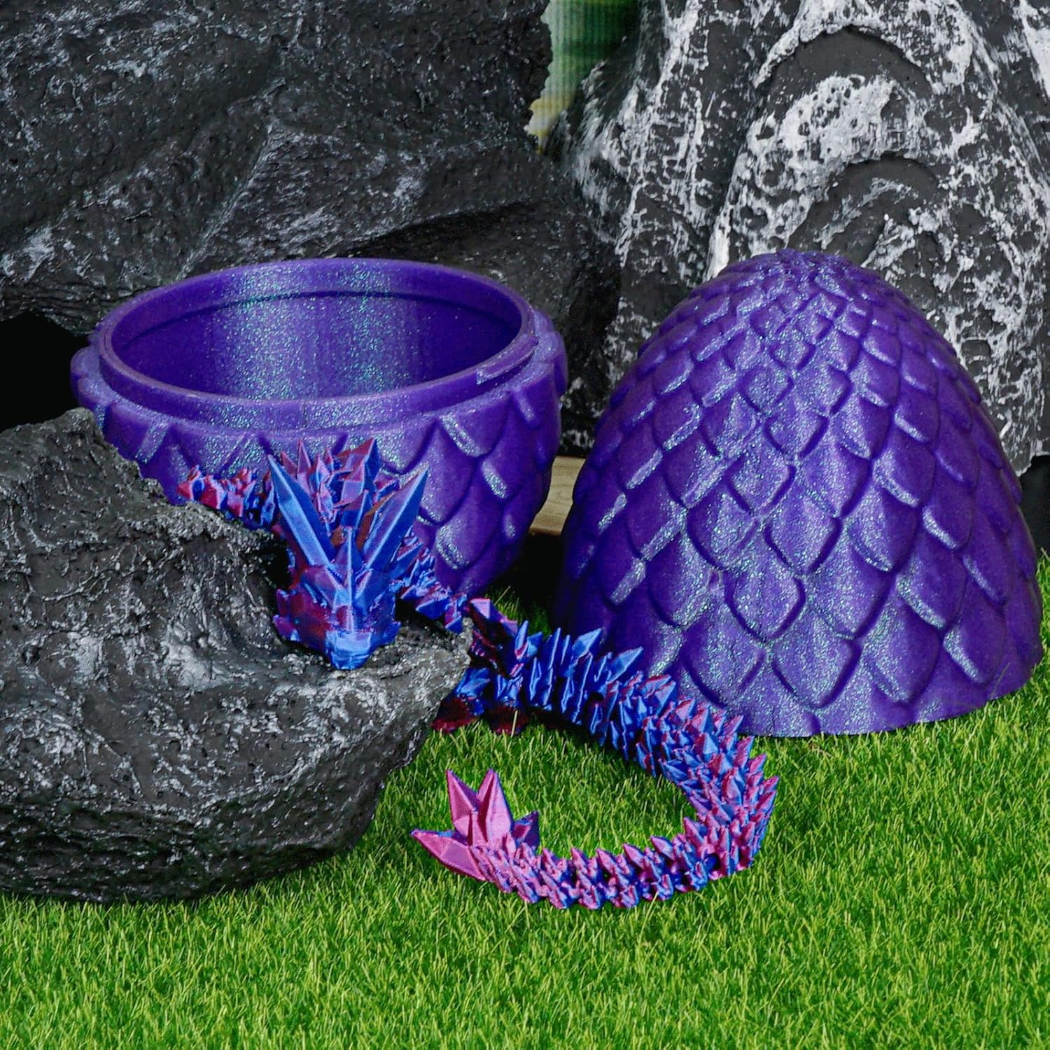 Dragon Eggs with Dragon Inside, 3D Printed Surprise Funny Gifts for Kids, Boys, Girls, Articulated Dragon Fidget Toys for Adults, Executive Desk Toys Office Room Decor (Shiny Purple)