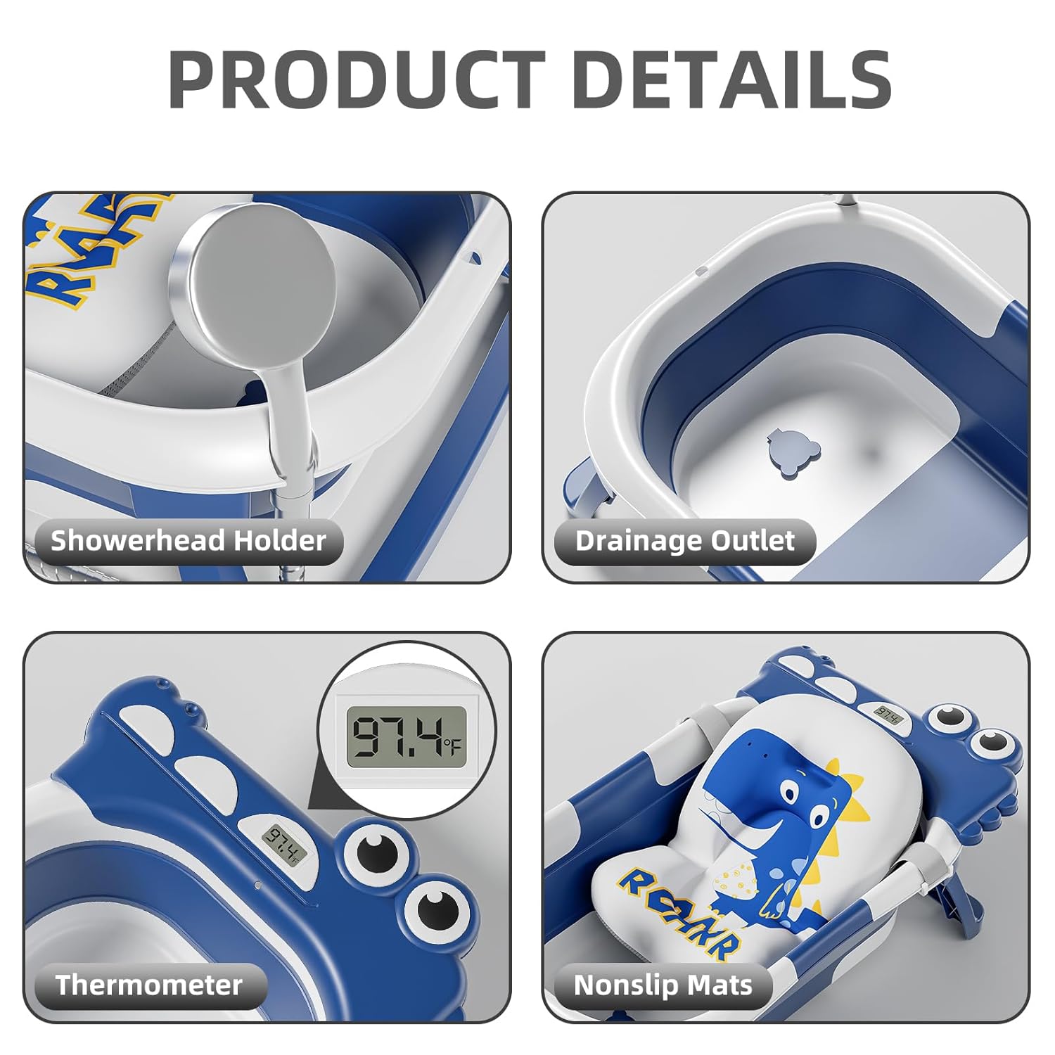 - Advanced Real-time Temperature Monitoring: Equipped with a cutting-edge temperature sensor, our travel baby bathtub offers visible real-time temperature monitoring. Instant reminders help prevent scalding or exposure to cold water. The wrap-around temperature lock system ensures accurate monitoring, making it versatile for use at home, during travel, or camping trips.
