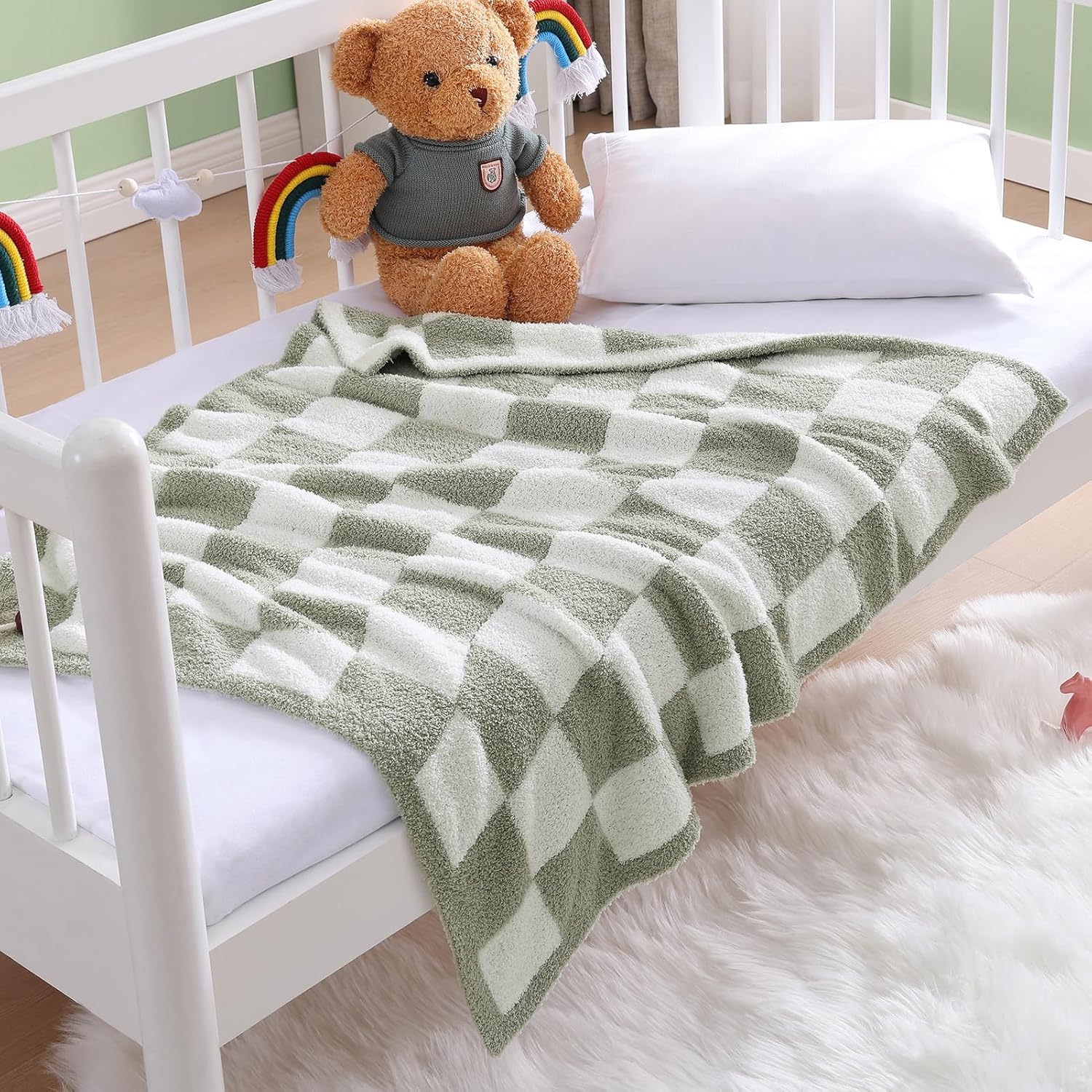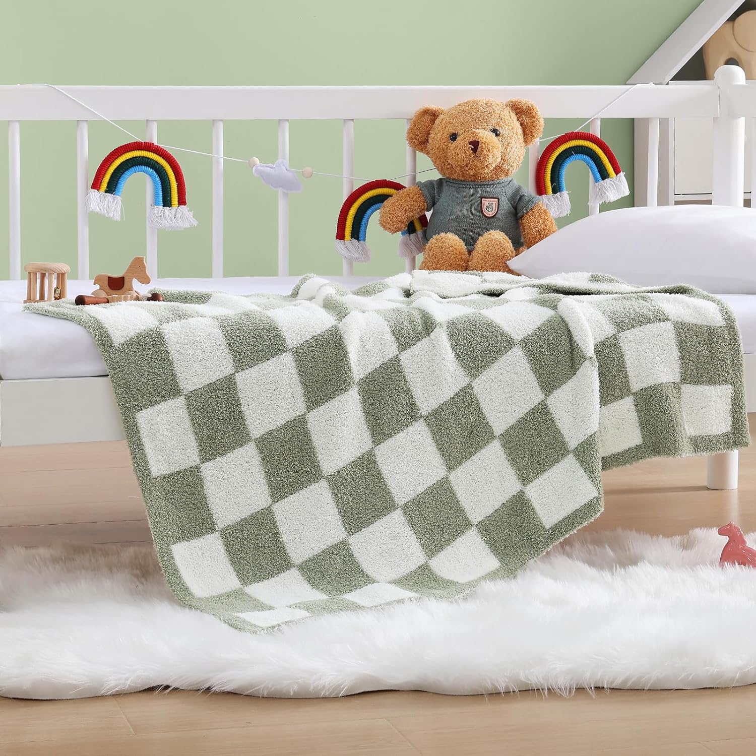 WRENSONGE Checkered Throw Blanket, Sage GreenSoft Cozy Fluffy Warm Hand Made Throw Blankets for Couch, Sofa, Chair, Bed, Camping, Picnic, Travel Lightweight Bed Blanket - 30"*40"