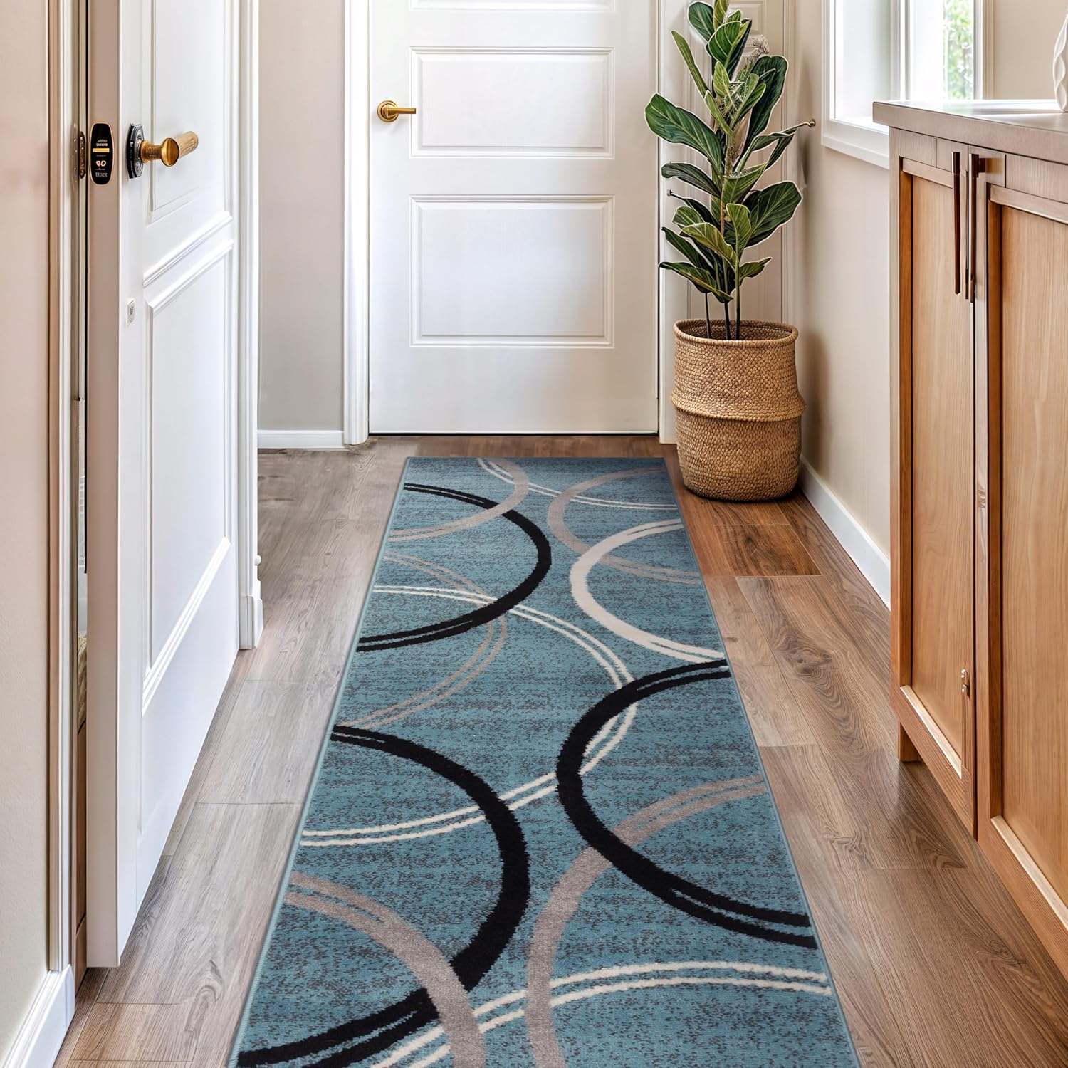 Rugshop Modern Wavy Circles Design Runner Rug 2'7" x 8' Blue