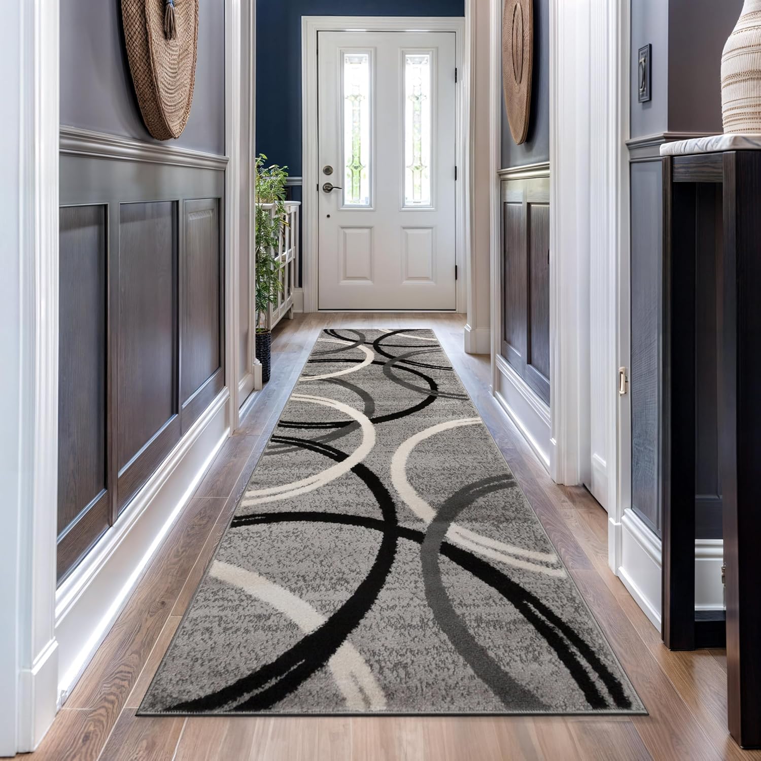 Rugshop Modern Wavy Circles Design Runner Rug 2'7" x 12' Gray