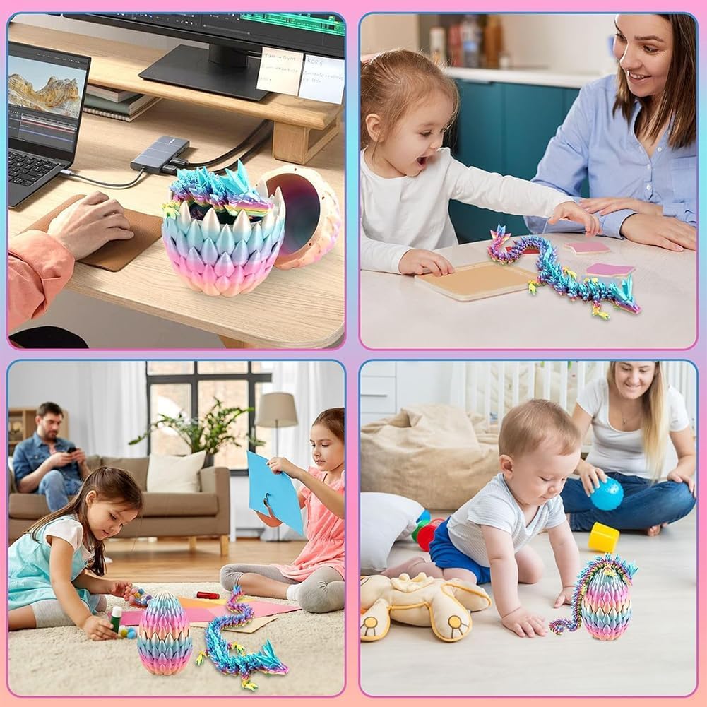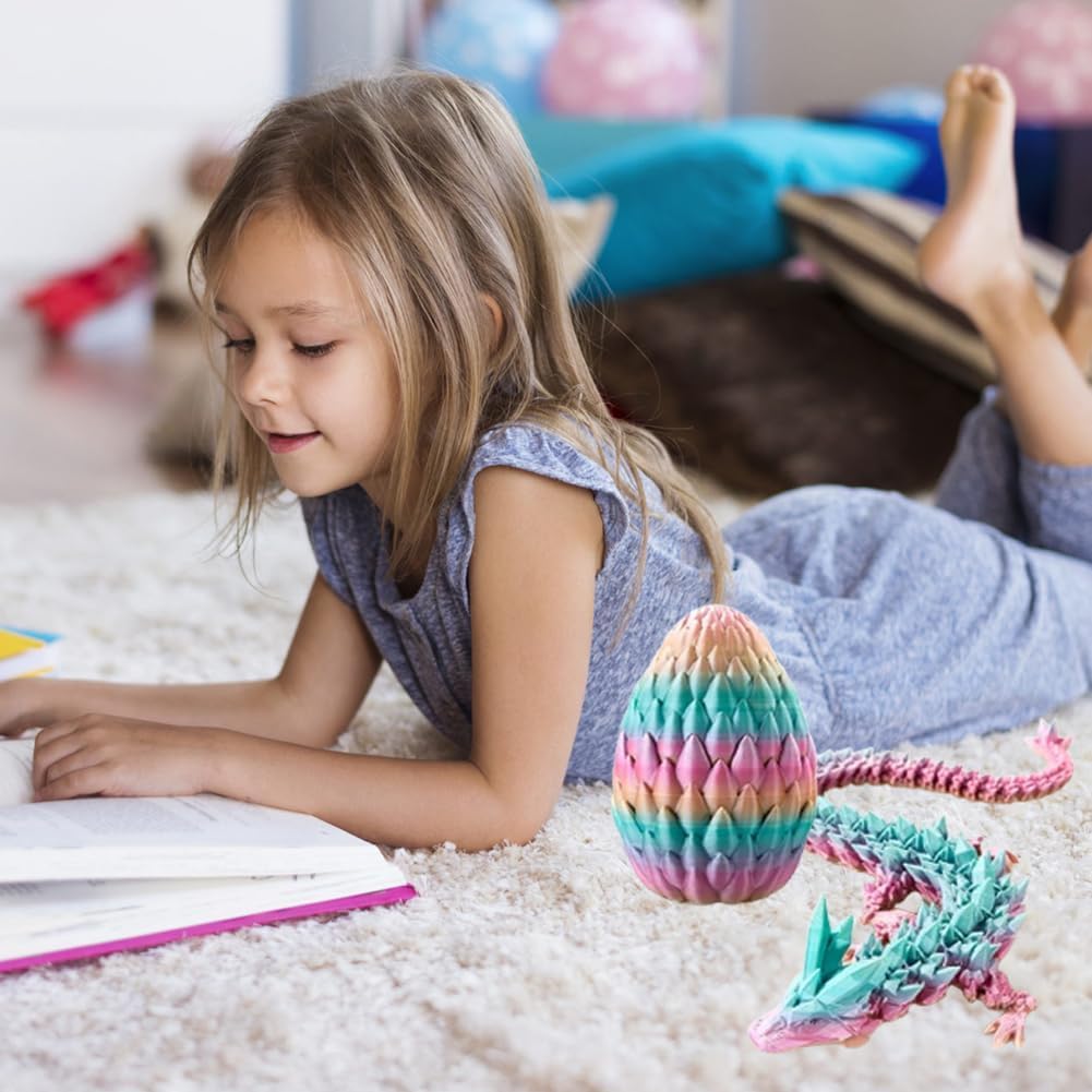 3D Printed Dragon Egg, Mystery Crystal Dragon Egg Fidget Toys Surprise, Easter Eggs Articulated Crystal Dragon Eggs with Dragon Inside (A-Rainbow)