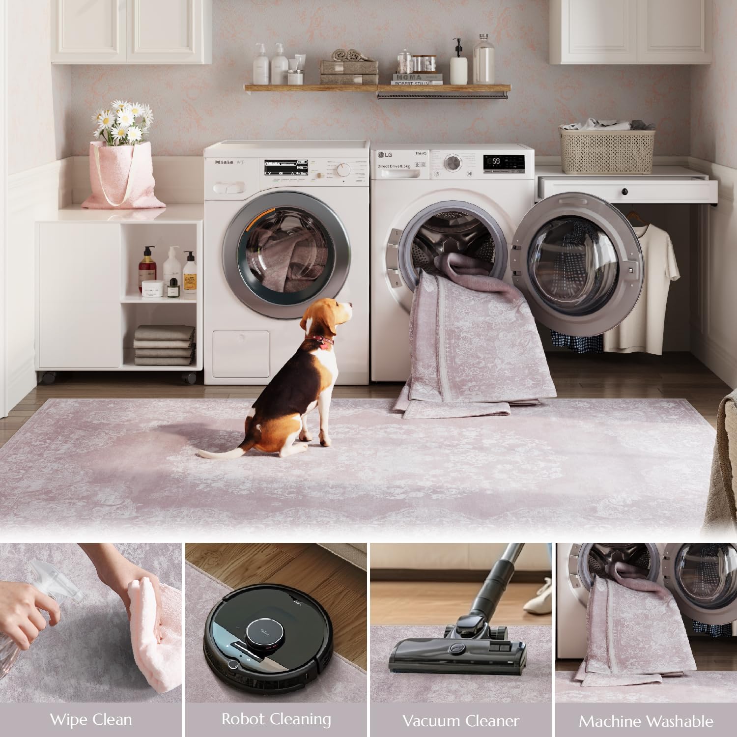 jinchan Vintage Floral 4x6 Area Rugs - Machine Washable Distressed Design Soft Ultra-Thin Low-Pile Non-Slip Carpet for Entryway Kitchen Bedroom Nursery Living Room Dining Room (4x6ft,Orchid)