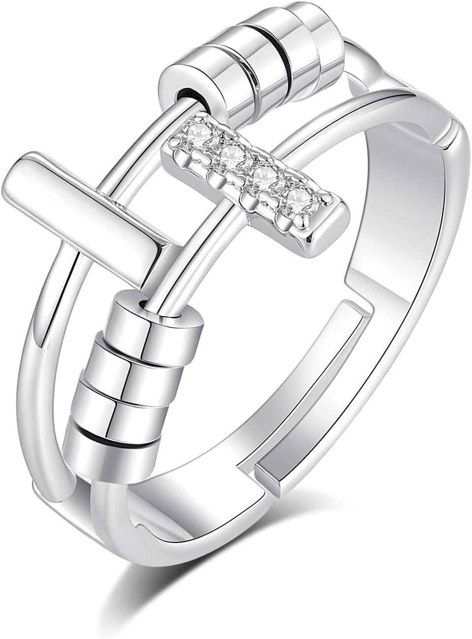 INFUSEU Funny Spinner Fidget Rings for Women Girls Anti Anxiety Stress Worry, Adjustable Size