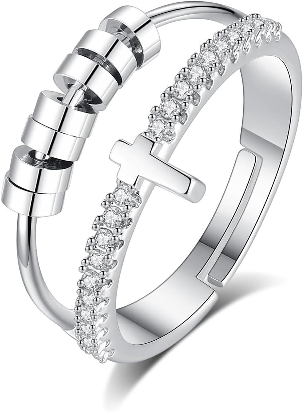 INFUSEU Funny Spinner Fidget Rings for Women Girls Anti Anxiety Stress Worry, Adjustable Size