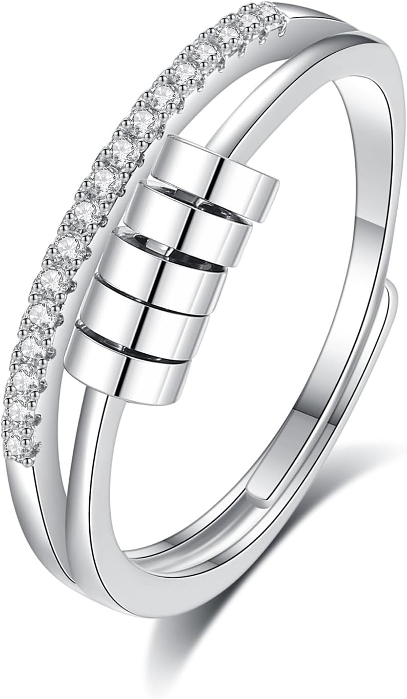 INFUSEU Funny Spinner Fidget Rings for Women Girls Anti Anxiety Stress Worry, Adjustable Size