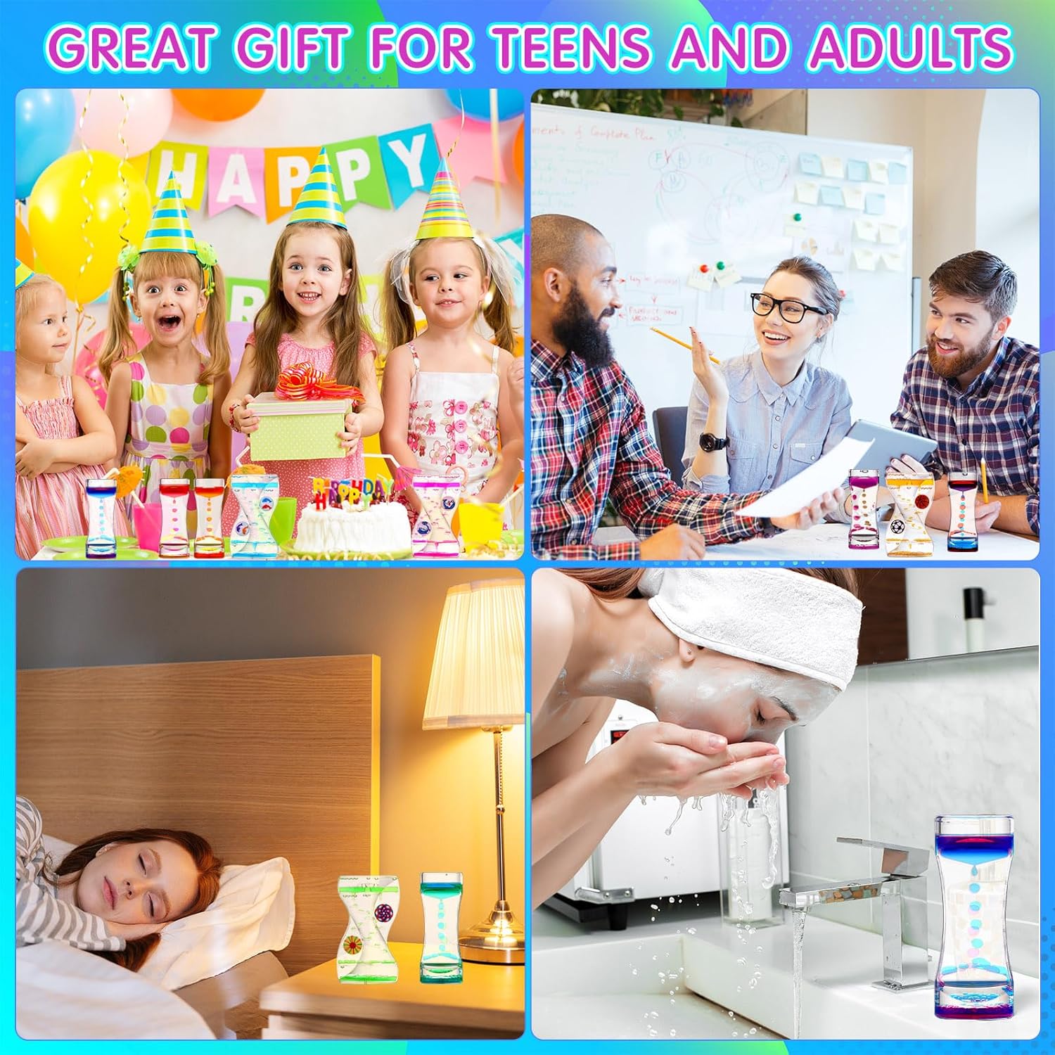 - Impressive Gift Box: see the soothing effect of the Liquid Timer's wandering bubbles, which move at their own pace; The gentle motion of its content serves as therapeutic, helping to alleviate stress, improve mood, and promote focus; This timer is the ideal accessory for individuals, and other sensory challenges