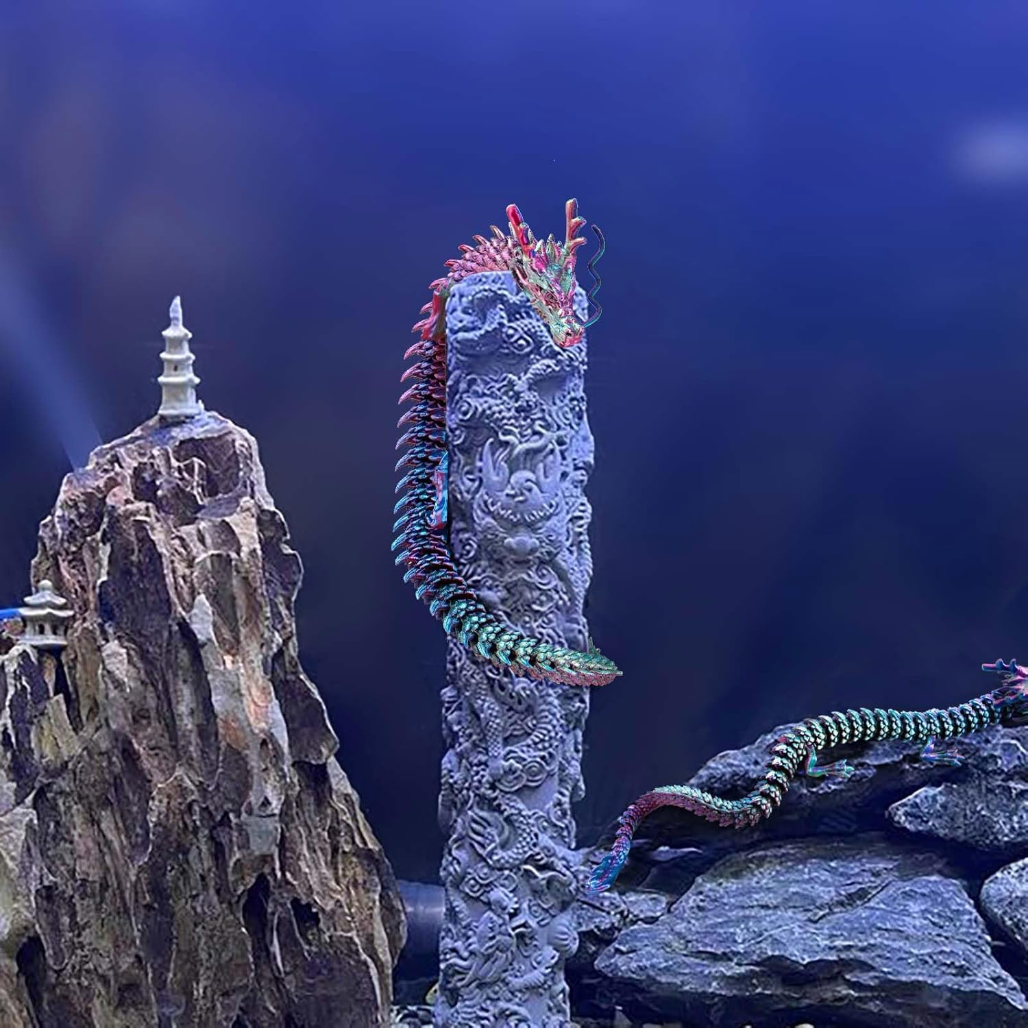 3D Printed Dragon, 17.7 Inch Articulated Dragon, Crystal Dragon, Dragon Fidget Toy, Home Office Decor Executive Desk Toys (RDBU)