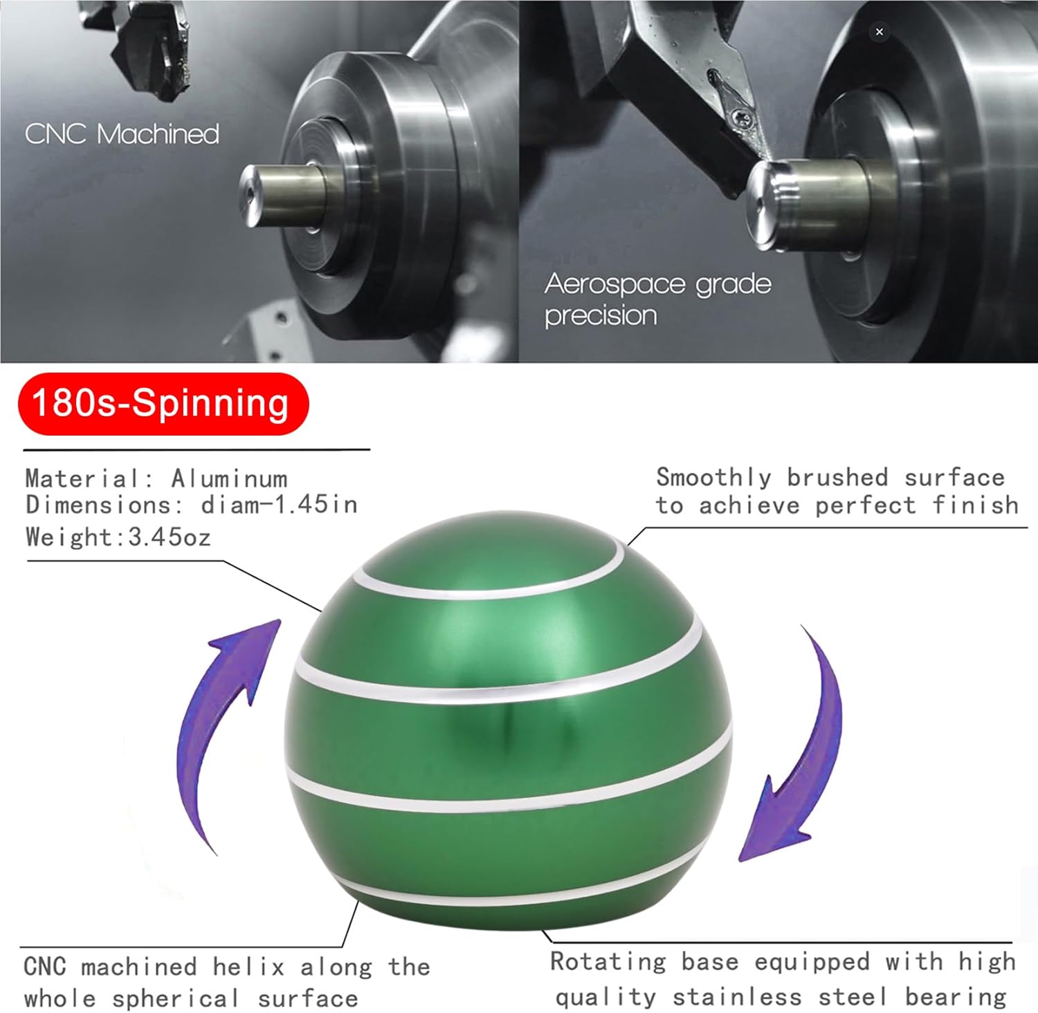 - 【Desk-Kinetic-Toys】1.48 in/0.16 lb, Spinning 180 seconds. Aluminum metal desk toy ball manufactured by CNC processing, small and exquisite.No batteries required & No tools required.