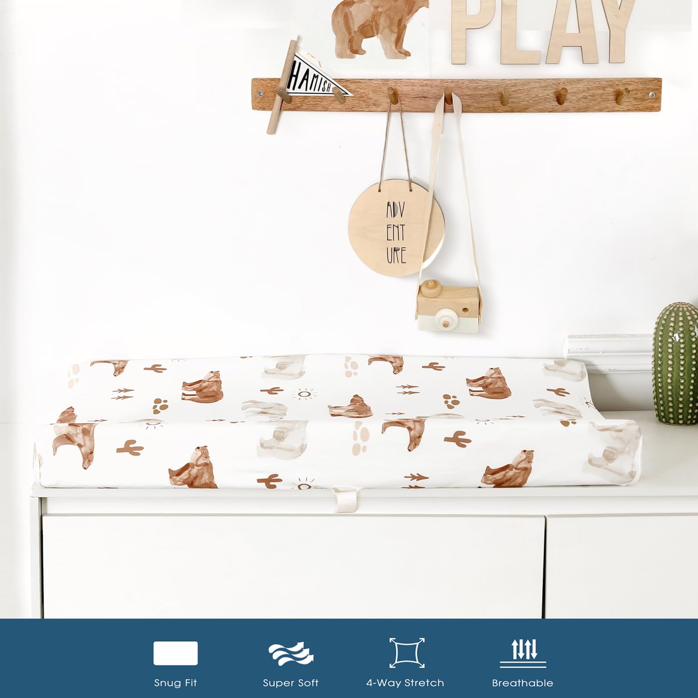 GRSSDER Stretch Ultra Soft Jersey Knit Changing Pad Cover Set 2 Pack, Change Table Pad Covers Fit 32"/34" x 16" Pads Safe and Snug, Cute Diaper Changing Pad Covers of Sunny Bear Print