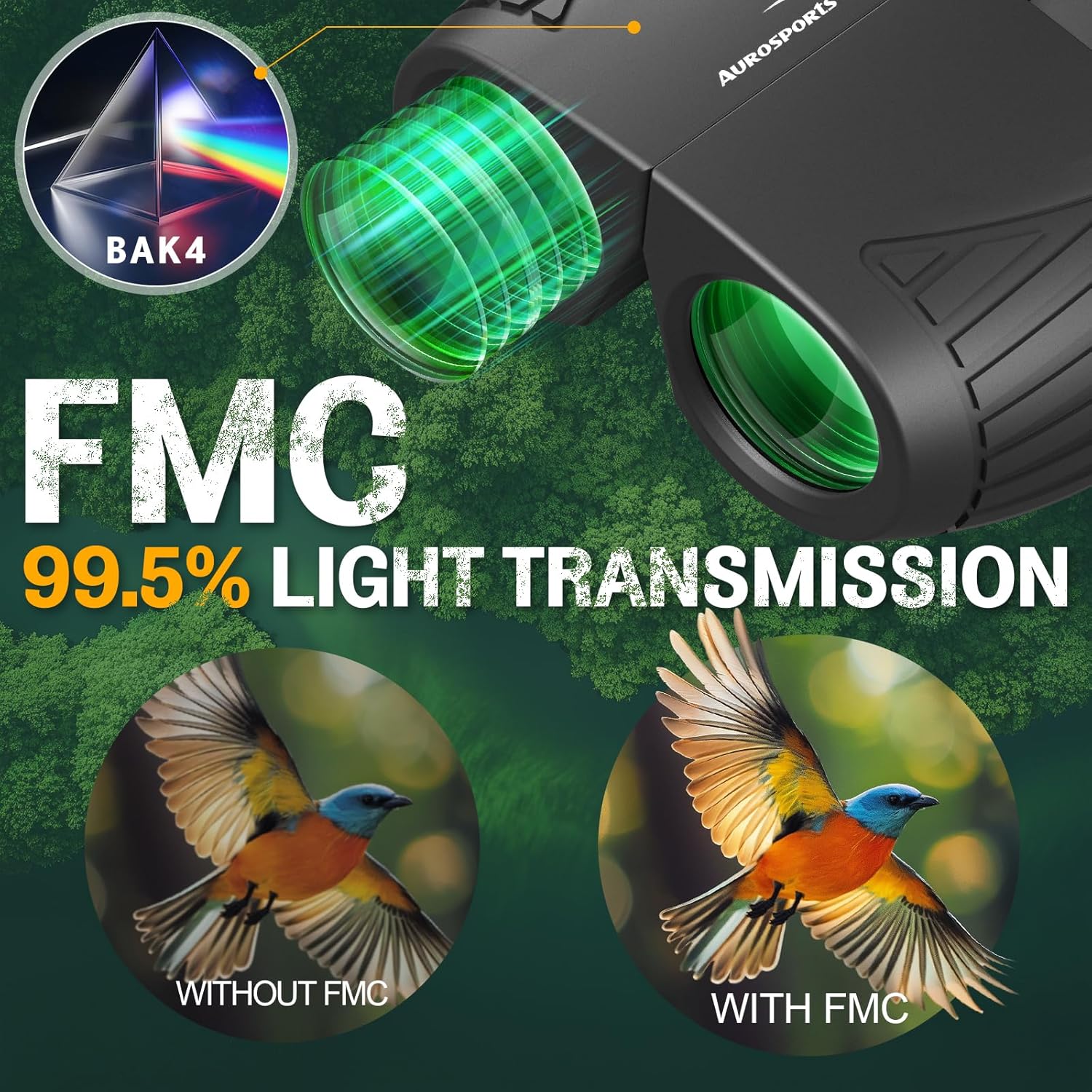 - Fully Multi-Coated 25mm Objective Lens: Our birdwatching binoculars are equipped with FMC (Fully Multi-Coated) lenses, providing exceptional light transmission, color fidelity (99% color restoration), and image sharpness. Say goodbye to distorted images and enjoy a bright and clear view.