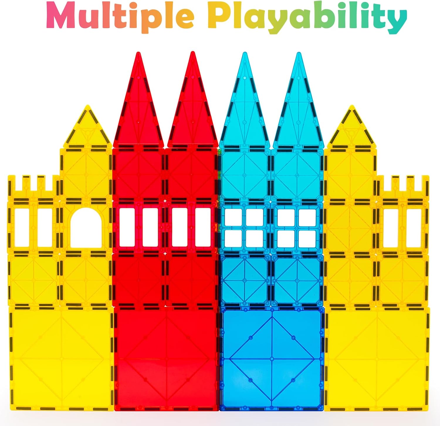 - STEM Approved Toy: Gemmicc Magnetic tiles set is suitable for classroom, family, kindergarten, day care centers etc. This toys set can help enhance your kids’ fine motor skills, color and shape recognition ability, Children can build anything they imagine, from 2D planar shapes to 3D geometry, your children will feel a sense of accomplishment during the play