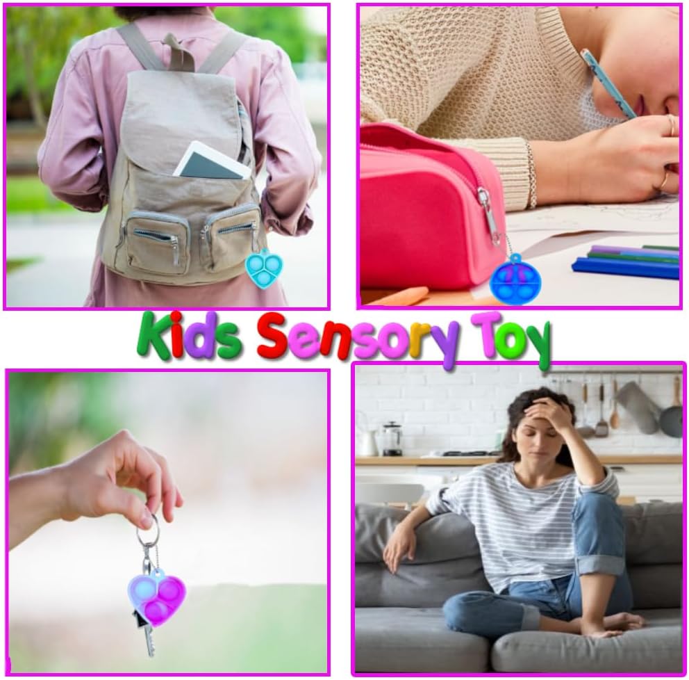 - The Mini Pop keychain toys are lightweight, durable,waterproof. You can use it as a key-chain and carry it with you all the time. Not only suitable for children, but also for adults, it helps create a good atmosphere. When press the bubbles, the mini pop toy will make a slight popping sound, when all the bubbles on the front are squeezed, then flip it over and start again. Give you endlessly fun.