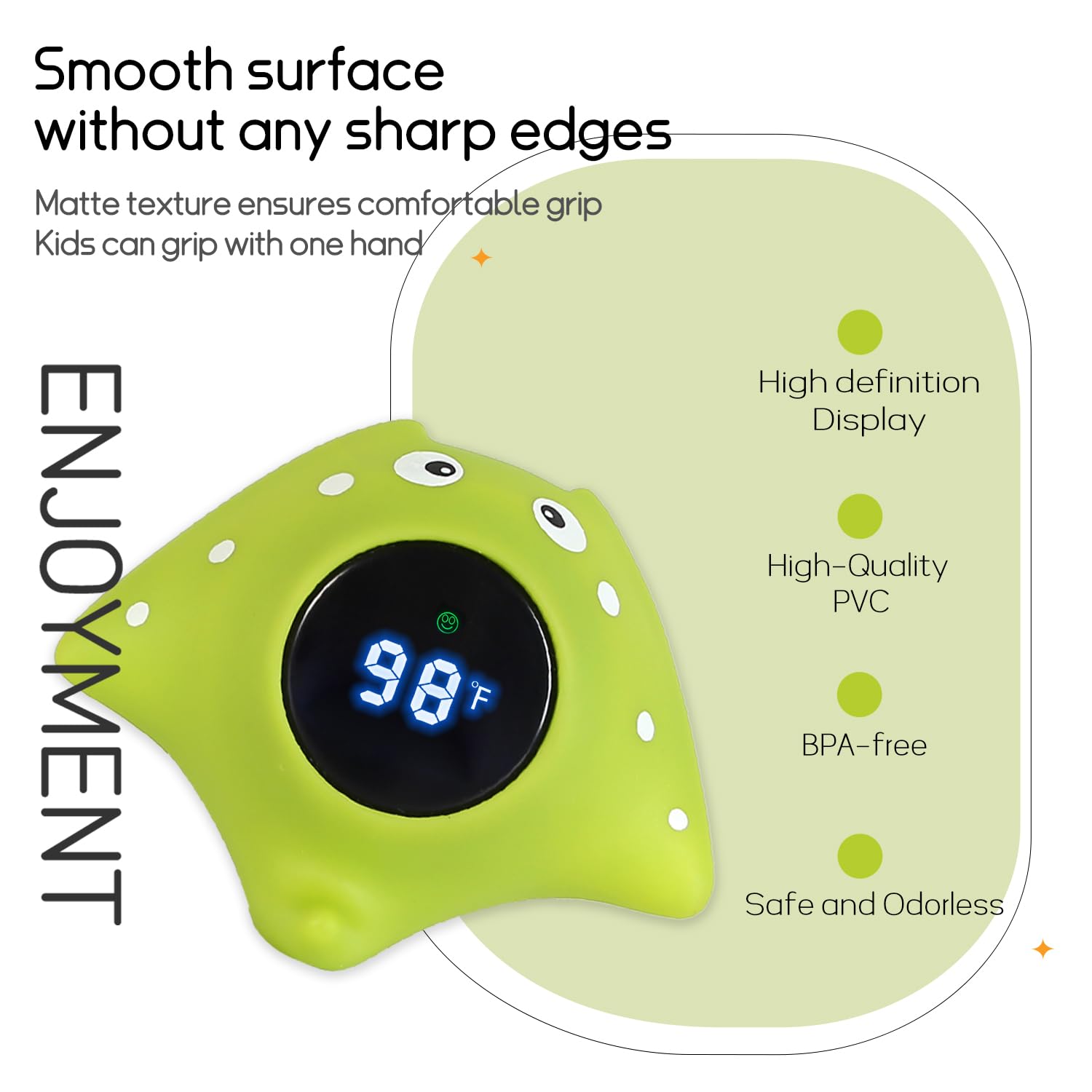 - Adorable Design - Our baby thermometer is carefully crafted with baby's safety in mind. Sleek and smooth design ensures it's gentle on delicate skin, while the adorable shape adds a touch of fun to baby bath time. Make bath time a moment of joy, laughter, and safety with our water thermometer.