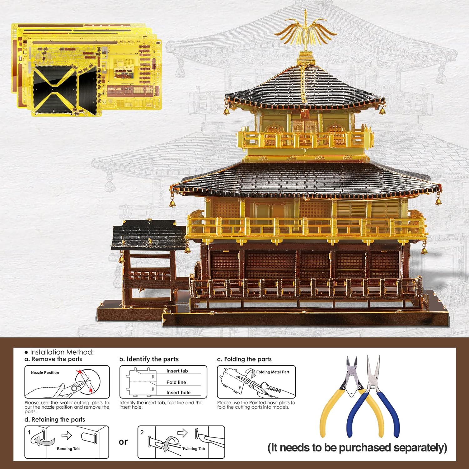 Piececool 3D Metal Model Kits for Adults, Kinkaku-ji Golden Pavilion Model Building Kits, Challenging 3D Puzzles for Stress Relief DIY Craft Kits