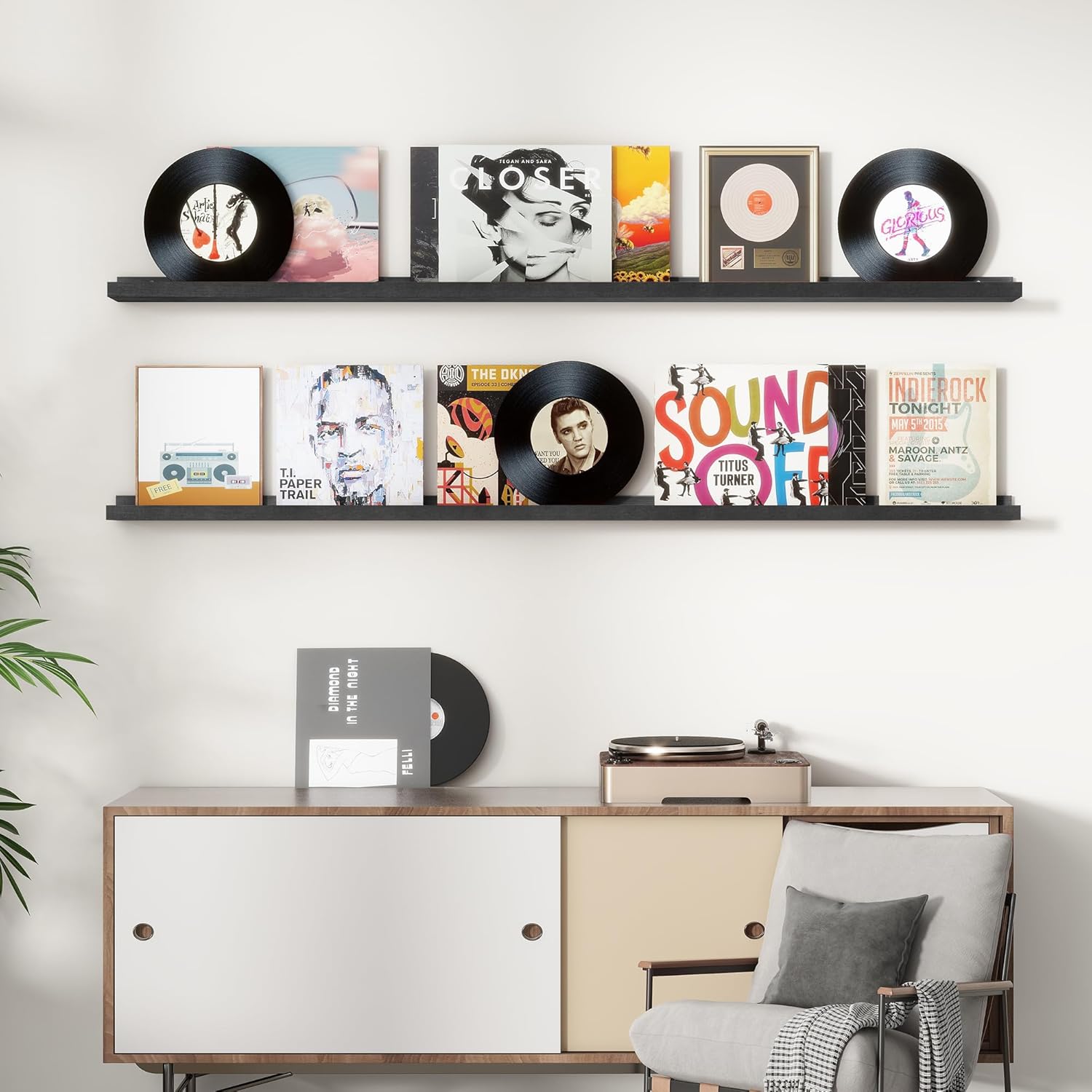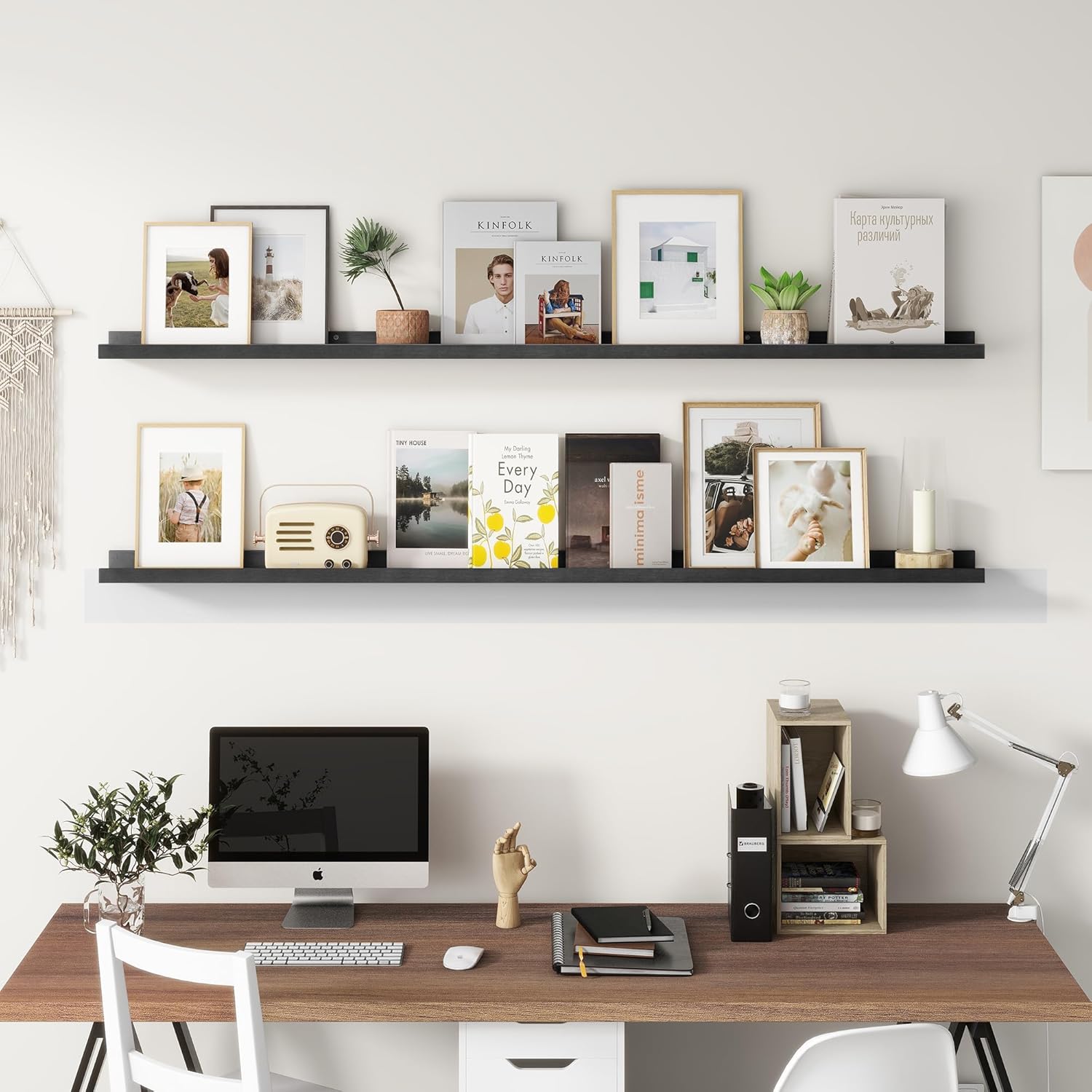 Picture Ledge Shelf, Floating Shelves Set of 2, Solid Pine Wood 72'' Long Large Nursery Book Shelves for Toys Storage, Kids Bookshelf for Living Room Bedroom Decor Books Photo Frames, Black